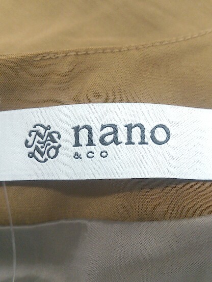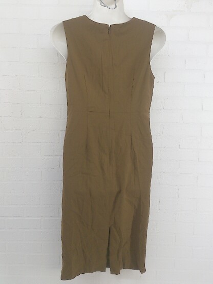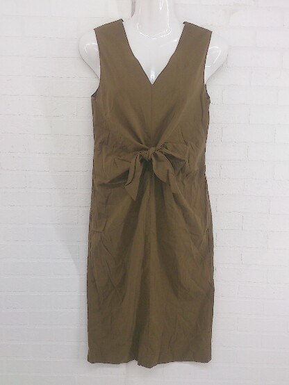◇ nano universe ナノユニバース Vネック ストレッチ ノースリーブ 膝下丈 ワンピース サイズ36 ブラウン レディース P