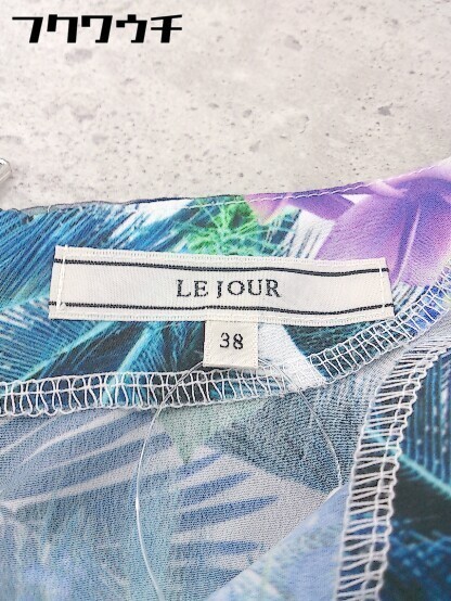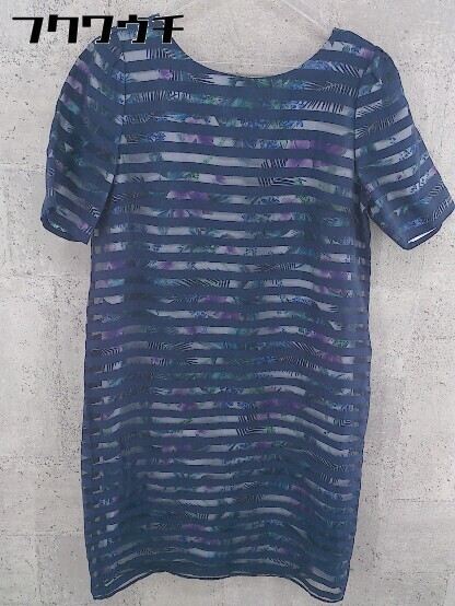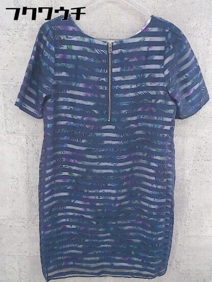 ◇ LE SOUK ルスーク ボーダー 総柄 半袖 膝丈 ワンピース サイズ38 ネイビー レディース
