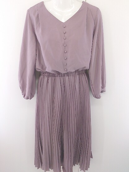◇ natural couture ナチュラルクチュール プリーツ 切替 長袖 膝下丈 ワンピース サイズF ピンク系 レディース