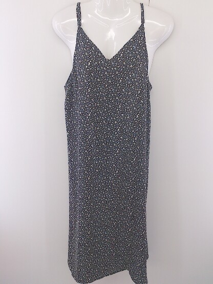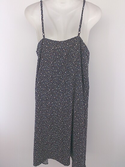 ◇ Samansa Mos2 blue サマンサモスモス ブルー 総柄 膝下丈 キャミソールワンピース サイズF ネイビー マルチ レディース