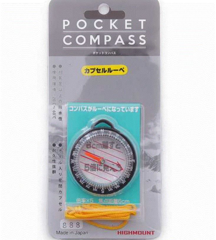 ハイマウント HIGHMOUNT 回転リング付きポケットコンパス ルーペ付き