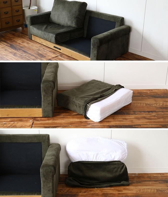 脚を取り外して、床置きタイプのローソファとして使うこともできます。