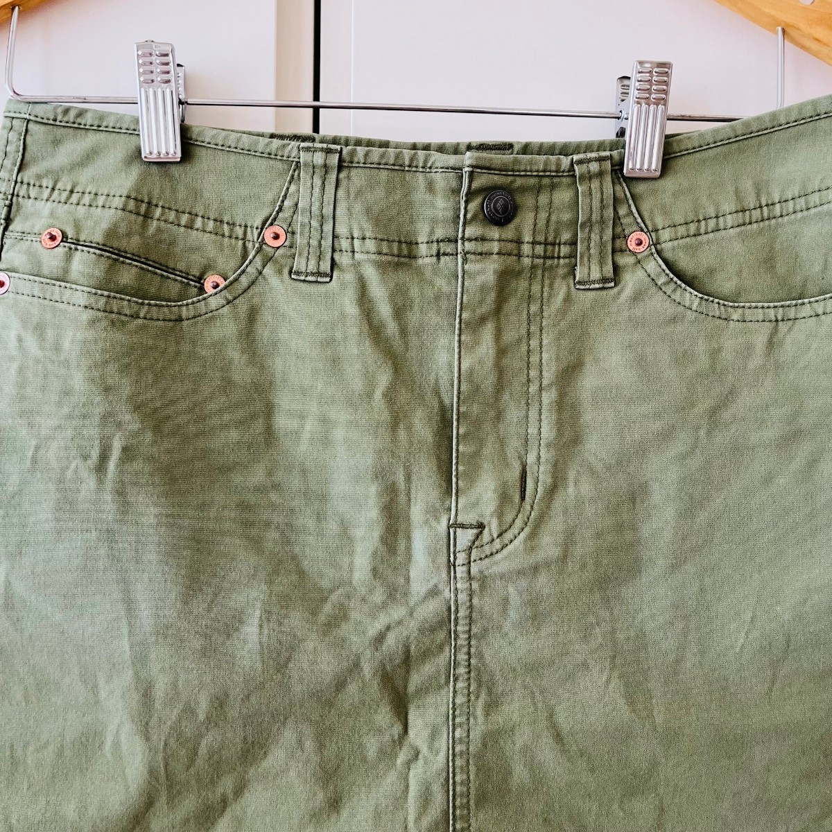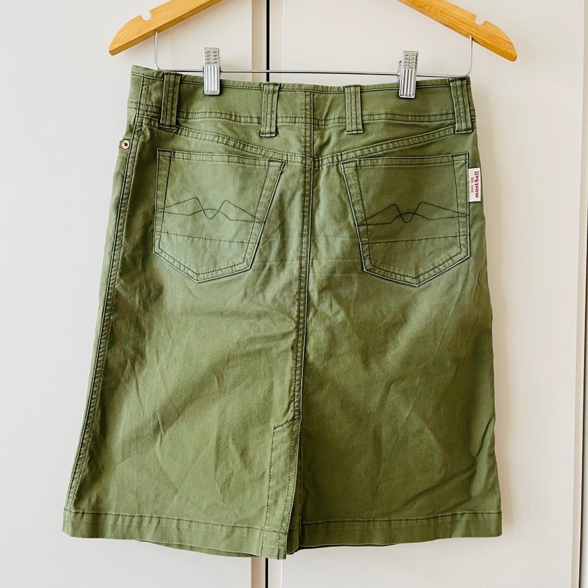 F9650cE mont-bell モンベル 台形スカート レディース グリーン系 カーキ サイズS ひざ丈スカート カジュアル ミリタリー 古着