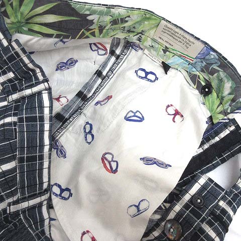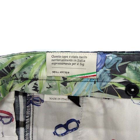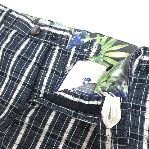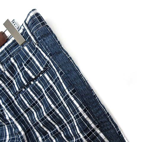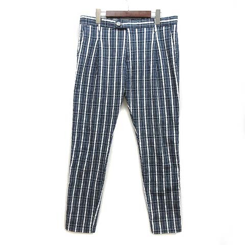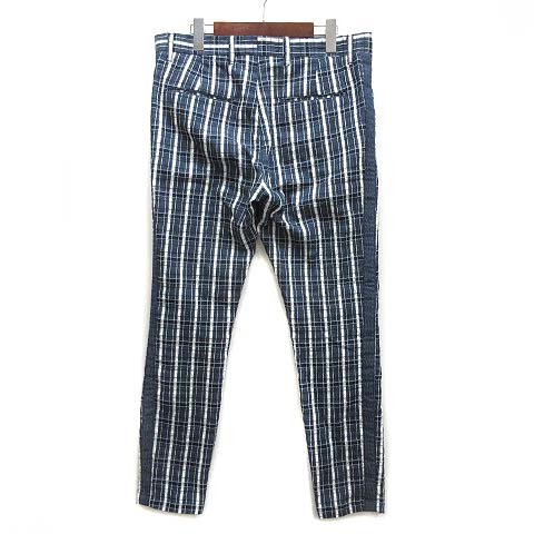 ネイルカッター NEILL KATTER ストレッチ テーパード パンツ チェック イタリア製 ネイビー 紺 46 メンズ