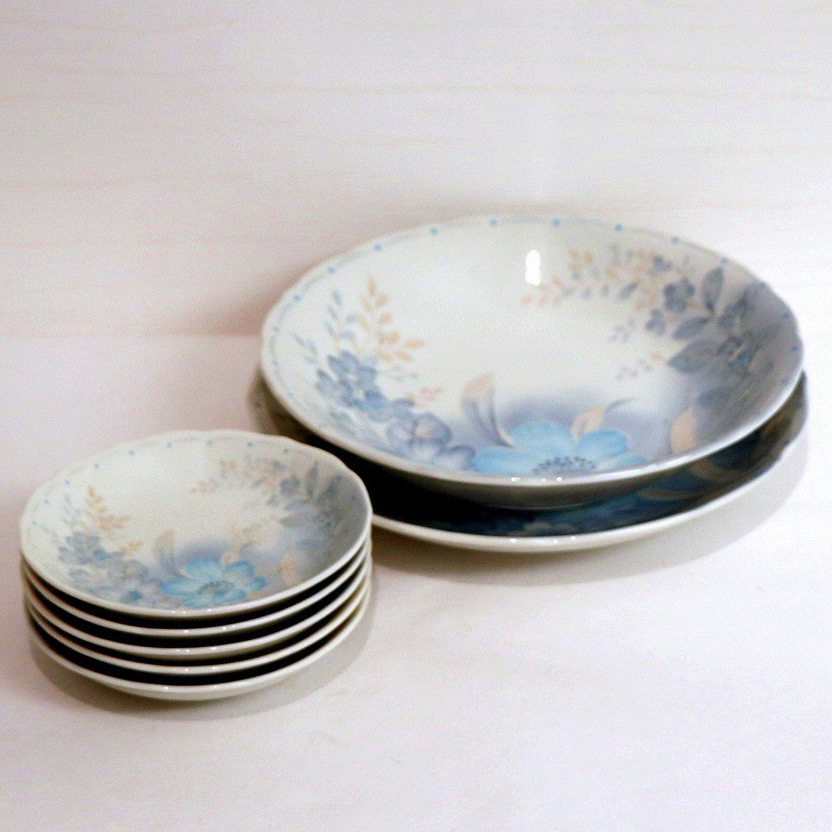大皿(直径:約212mm、高さ:約34mm)1枚、深皿(直径:約203mm、高さ:約44mm)1枚、小皿(直径:約120mm、高さ:約23mm)5枚、未使用、箱汚れあり。状態ランク:B
