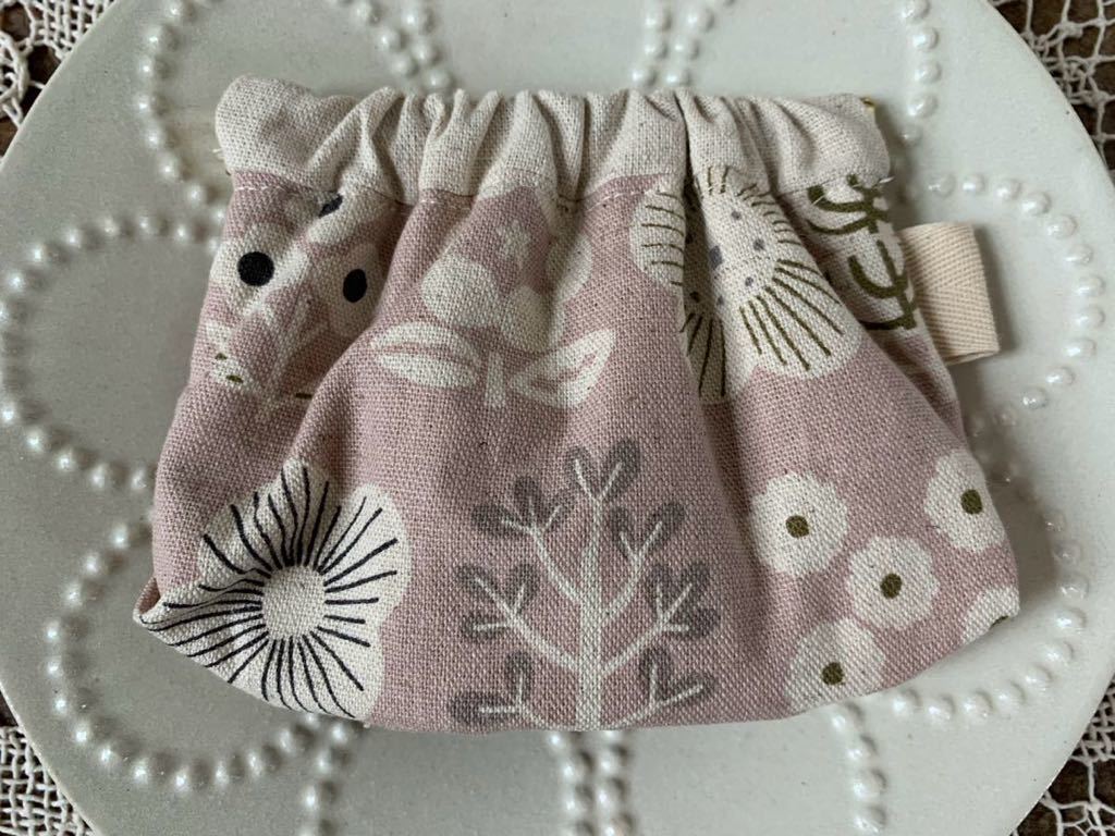ハンドメイド  バネポーチ ポーチ 小物入れ くすみピンク 花柄 北欧柄