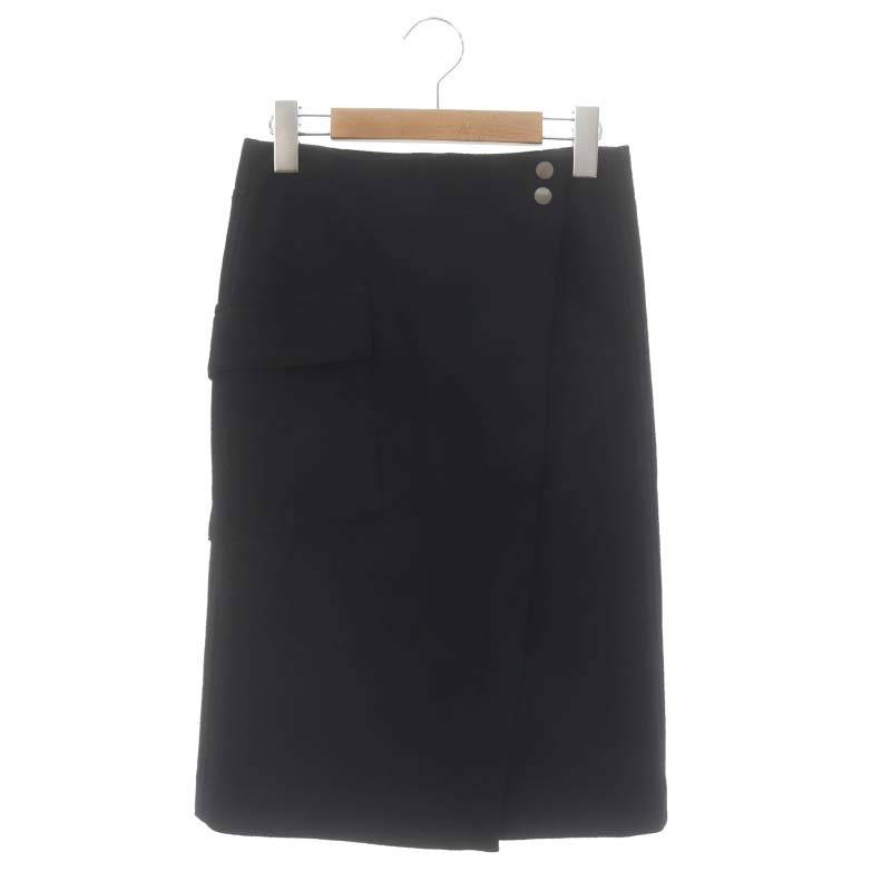 マカフィー MACPHEE トゥモローランド ウールジャージー ラップタイトスカート ひざ丈 ウール 32 黒 ブラック ■OS レディース