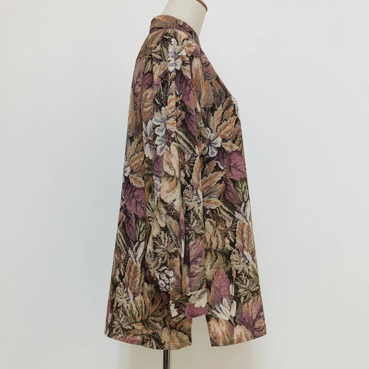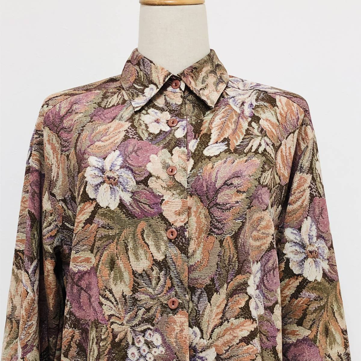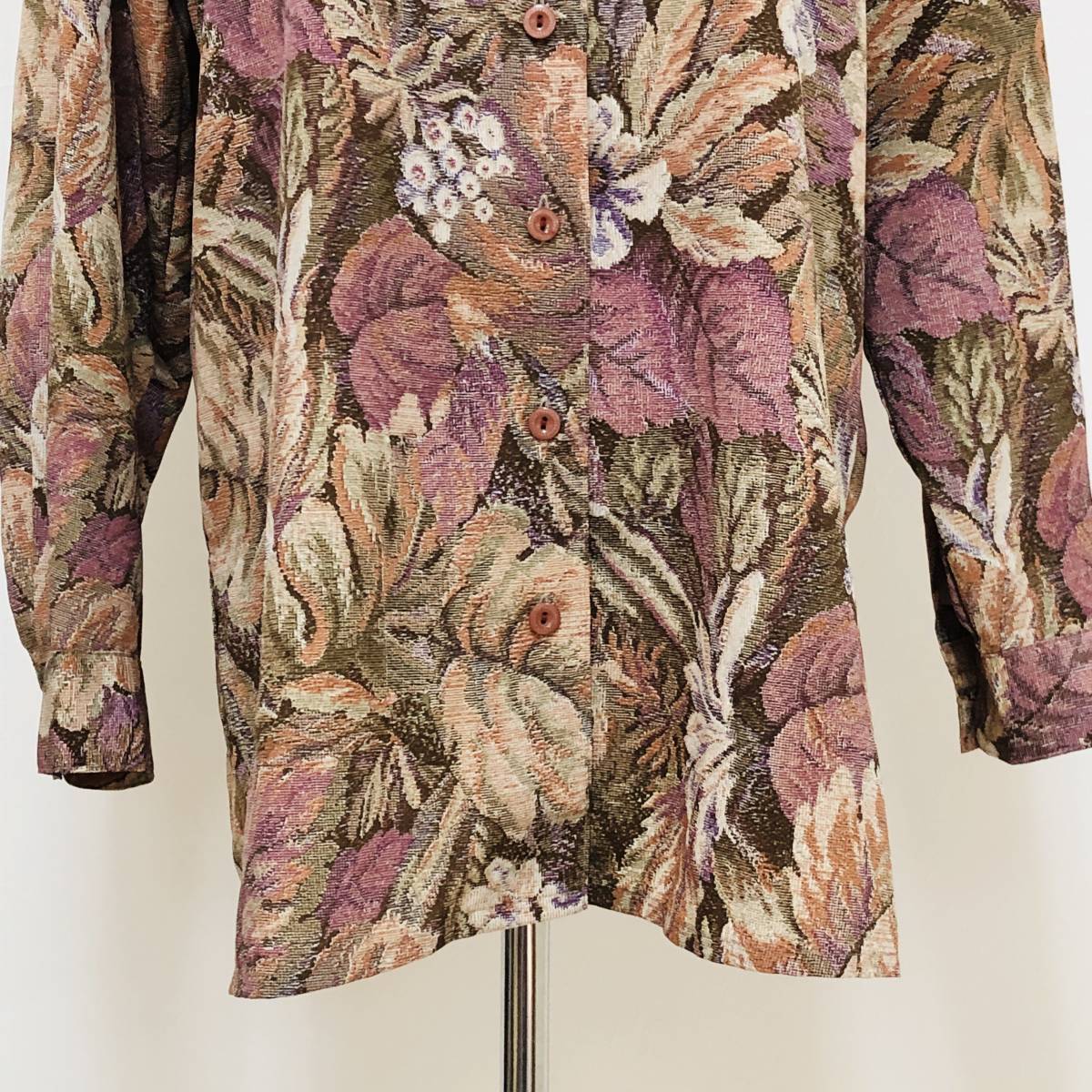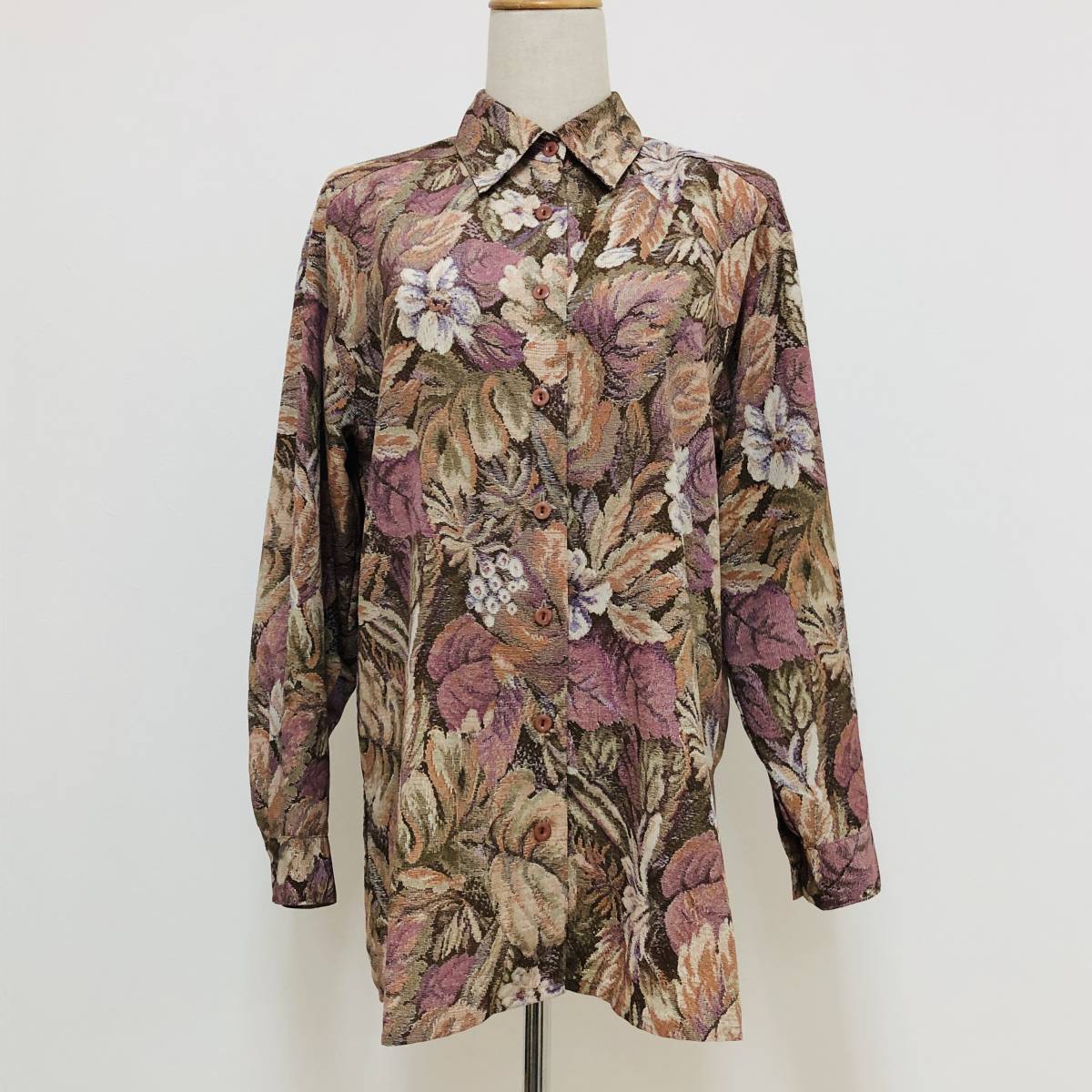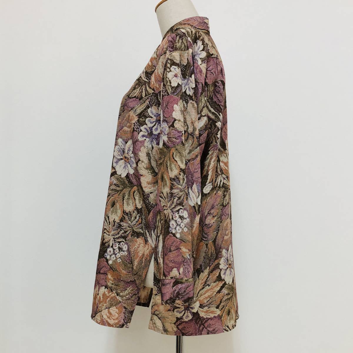 k3294 美品 Mass Order ブラウス 長袖 肩パット 薄手 サイドスリット 日本製 M 花柄 レディース 昭和レトロ エレガントガーリーチック