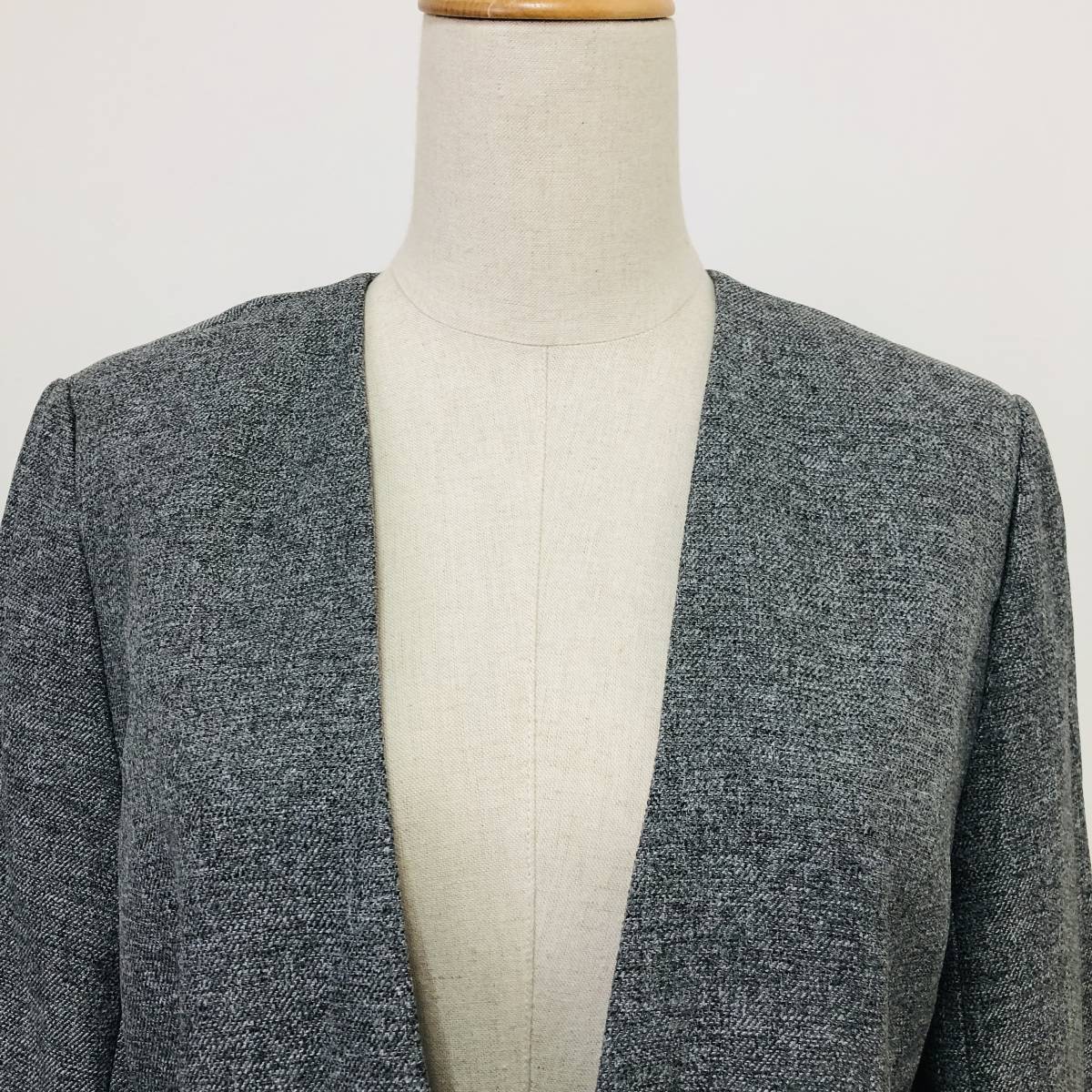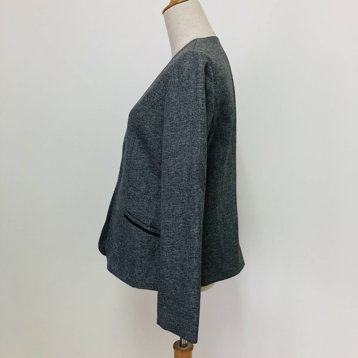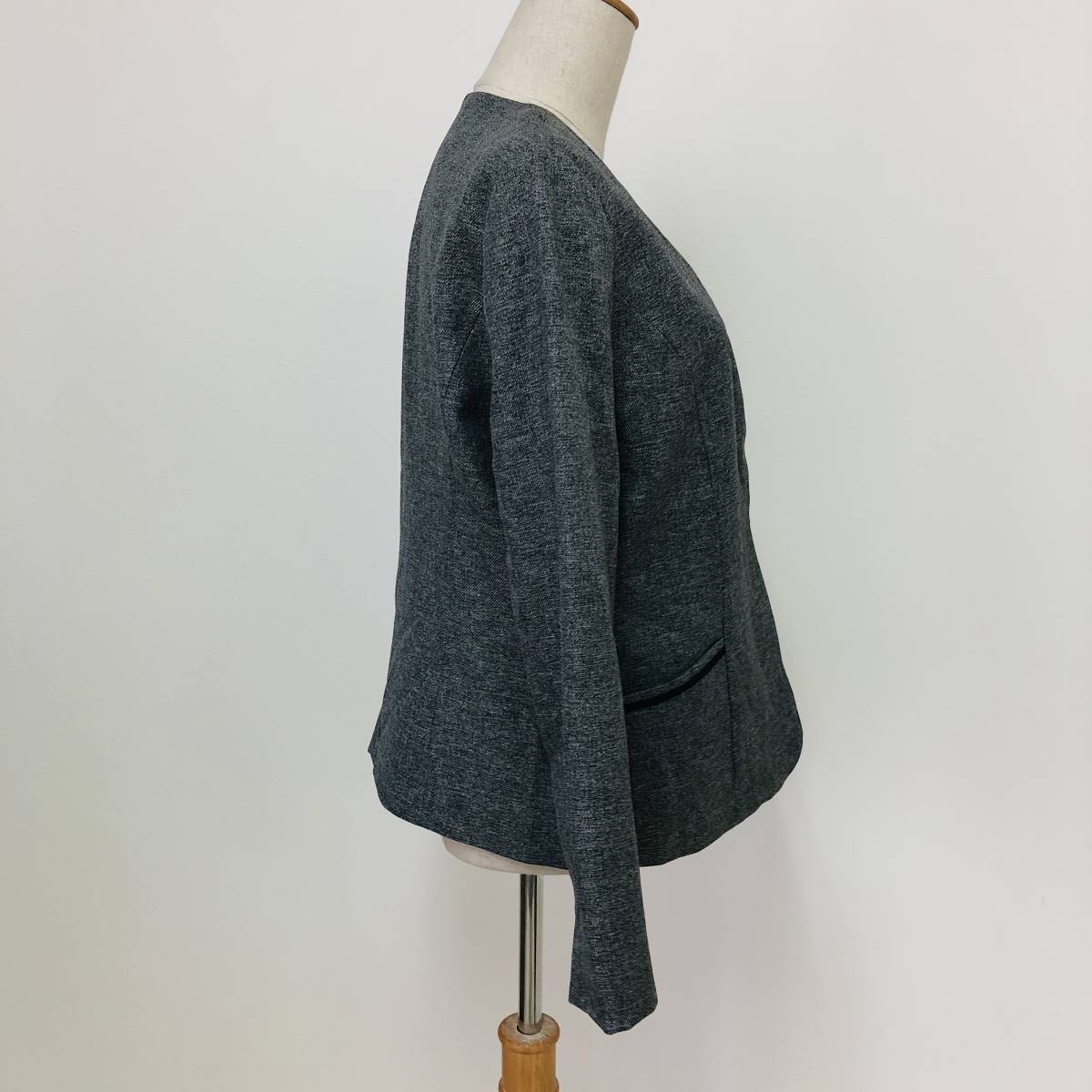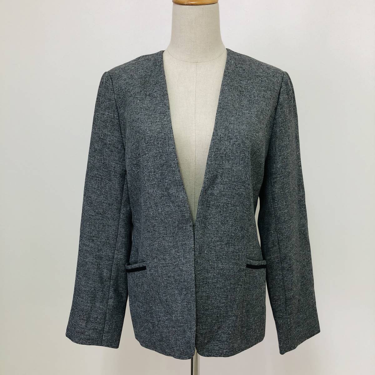 k3319 美品 Plumerie プルメリエ ジャケット ノーカラー 肩パット 裏地 ポケット L グレー レディース 上品 清楚 エレガントガーリーチック