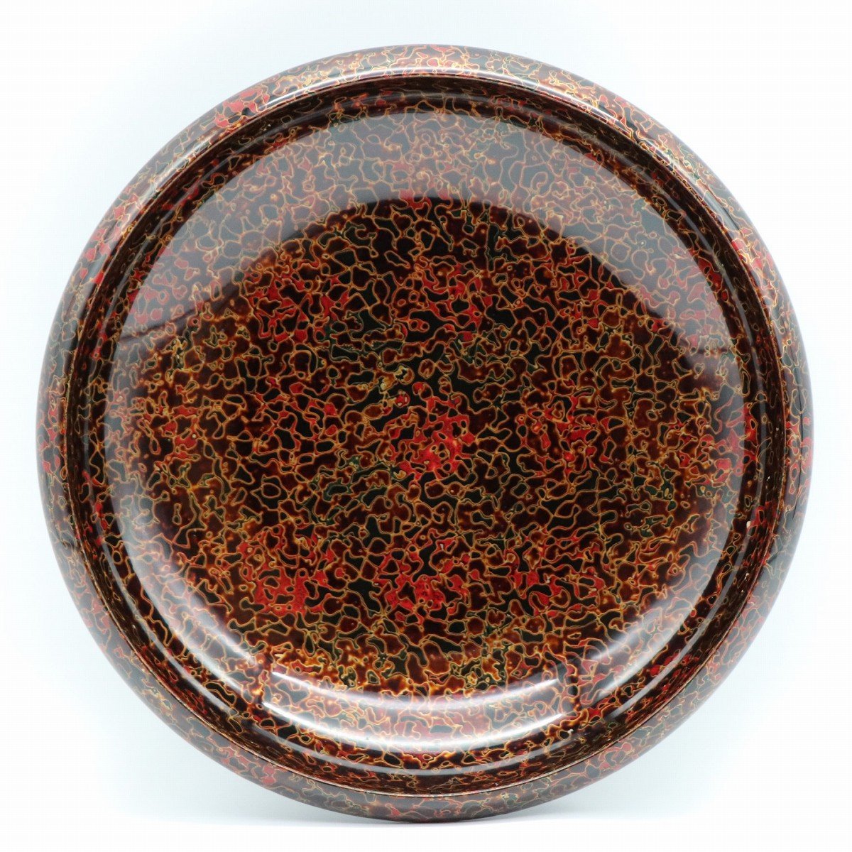 津軽塗菓子器(直径:約242㎜、高さ:約68㎜)、個人情報保護のため写真に一部加工を施しています、状態ランク:C、名入り