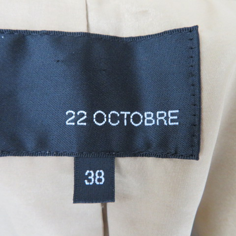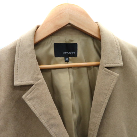 22オクトーブル 22 OCTOBRE テーラードジャケット ミドル丈 総裏地 シングルボタン スエード調 無地 38 ベージュ /YK1 レディース