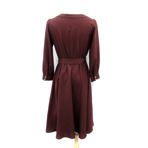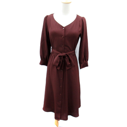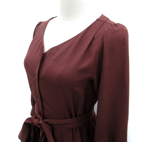 プロポーション ボディドレッシング ワンピース ミモレ丈 長袖 Vネック 無地 リボンベルト付き 2 赤茶 レッドブラウン /SY1 レディース