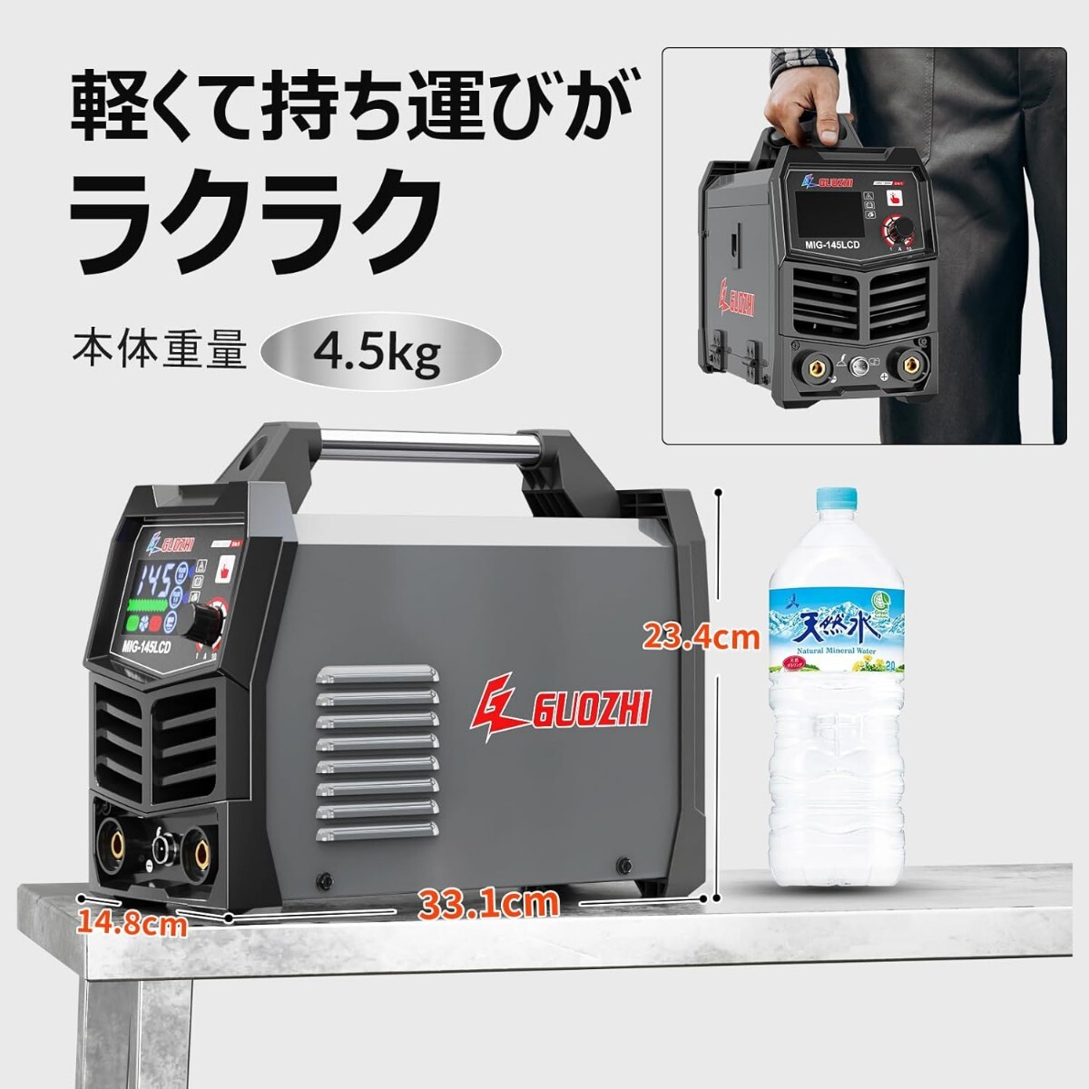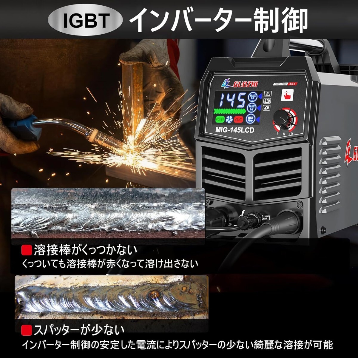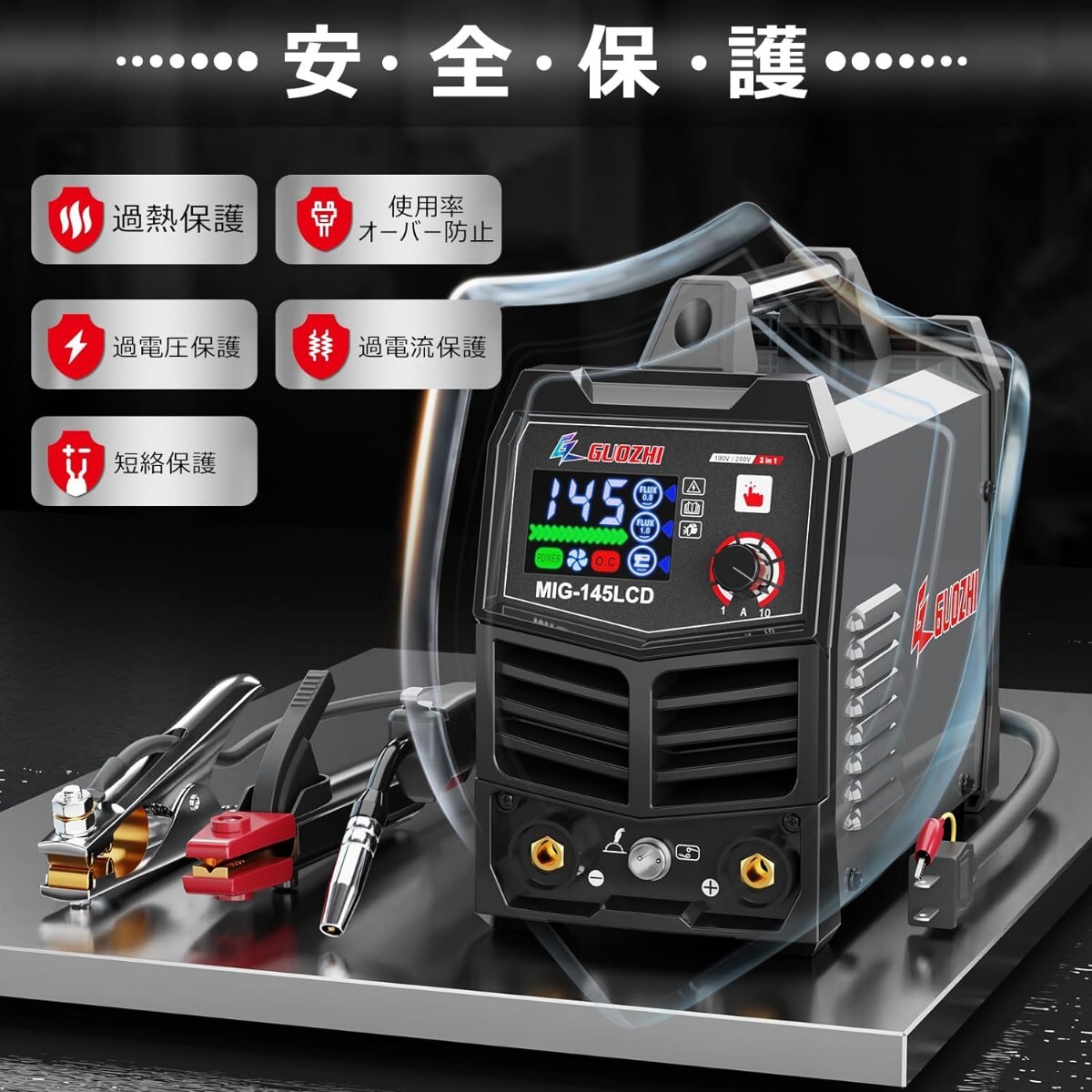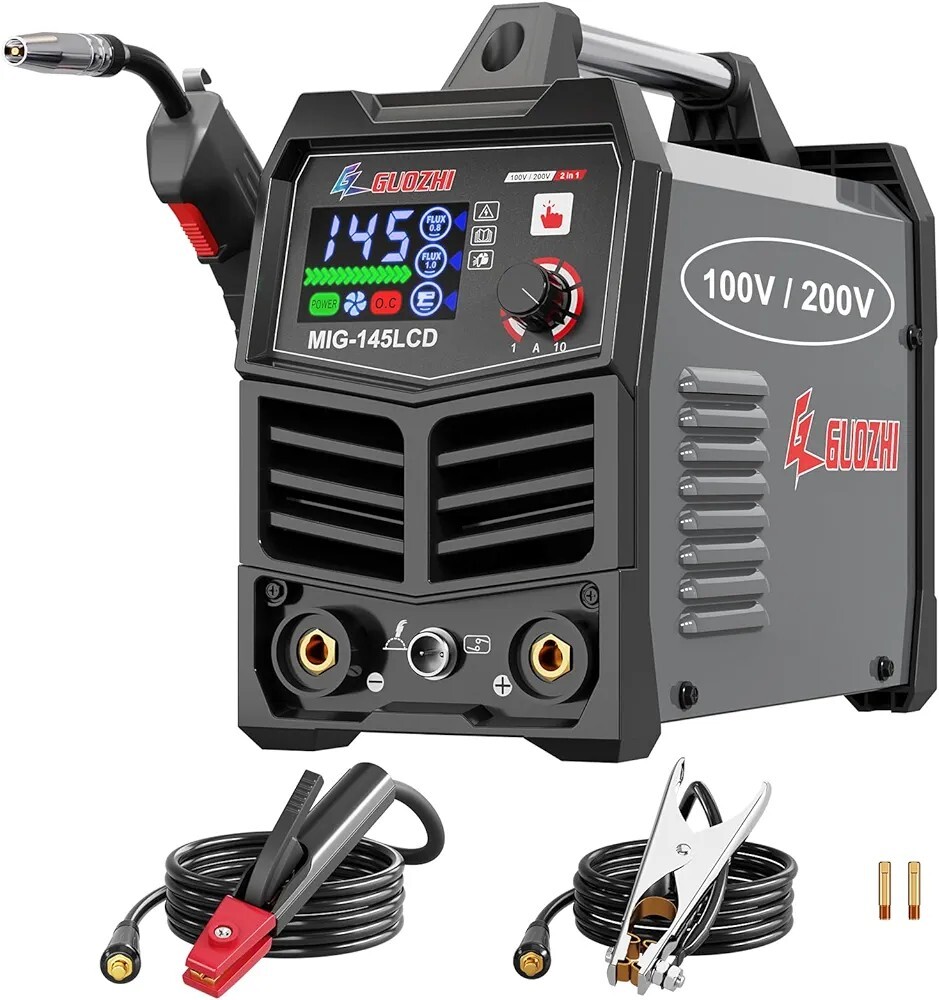 GZ GUOZHI 溶接機 100v 200V 兼用 半自動 145A アーク溶接 ノンガスワイヤー溶接 1台2役 インバーター直流 半自動溶接機 定格使用率60% 小型 軽量 家庭用 初心者向け 電気溶接機 MIG-145LCD