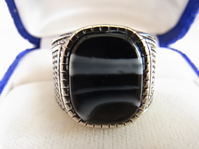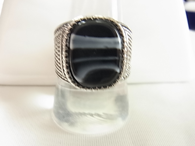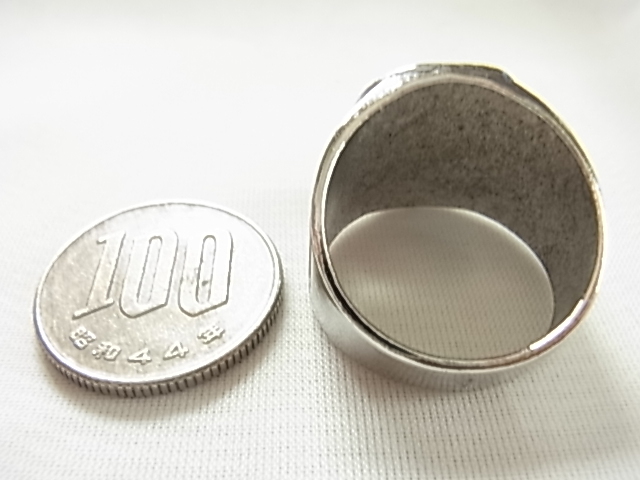 ビンテージ/ヴィンテージ 銀色 シルバートーン 濃紺にブルーフレー系の横線のストーン調 サイズリング23~24 ユニセックス 指輪☆