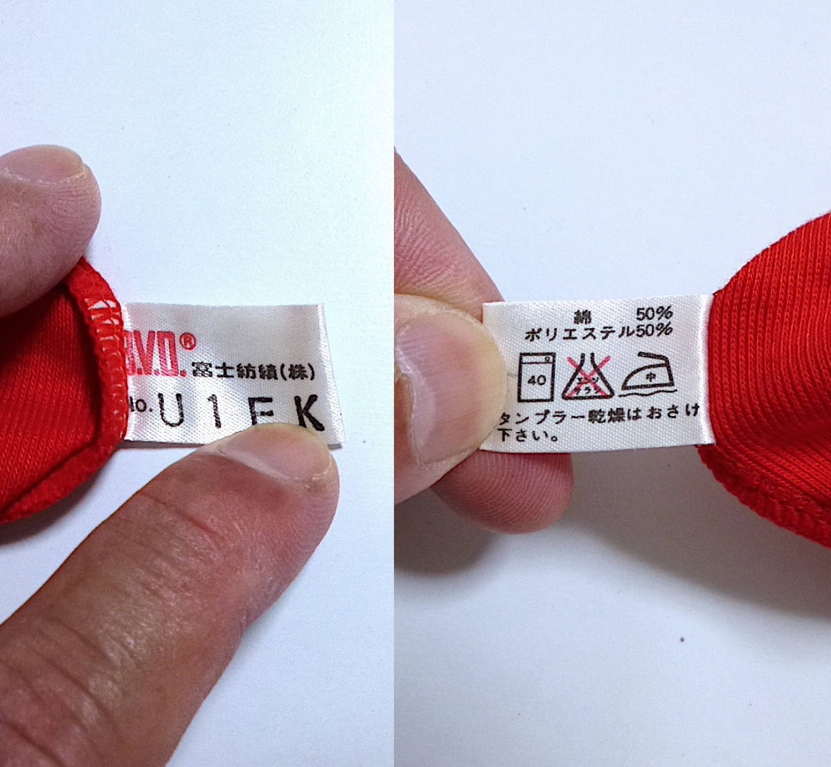コメント | おそらく70年代から80年代頃のものと思われます。富士紡績(株)取り扱い。日本製。全体的なデザインはシンプルな感じで、エリはクルーネック、左ムネにロゴがフロッキープリントで入っています。シルエットは着る方の体形にもよりますがピッタリ目になると思います。計測した実寸を参考にしてみてください。他にもいろいろなアイテムを出品しています。よろしければご覧ください。 |