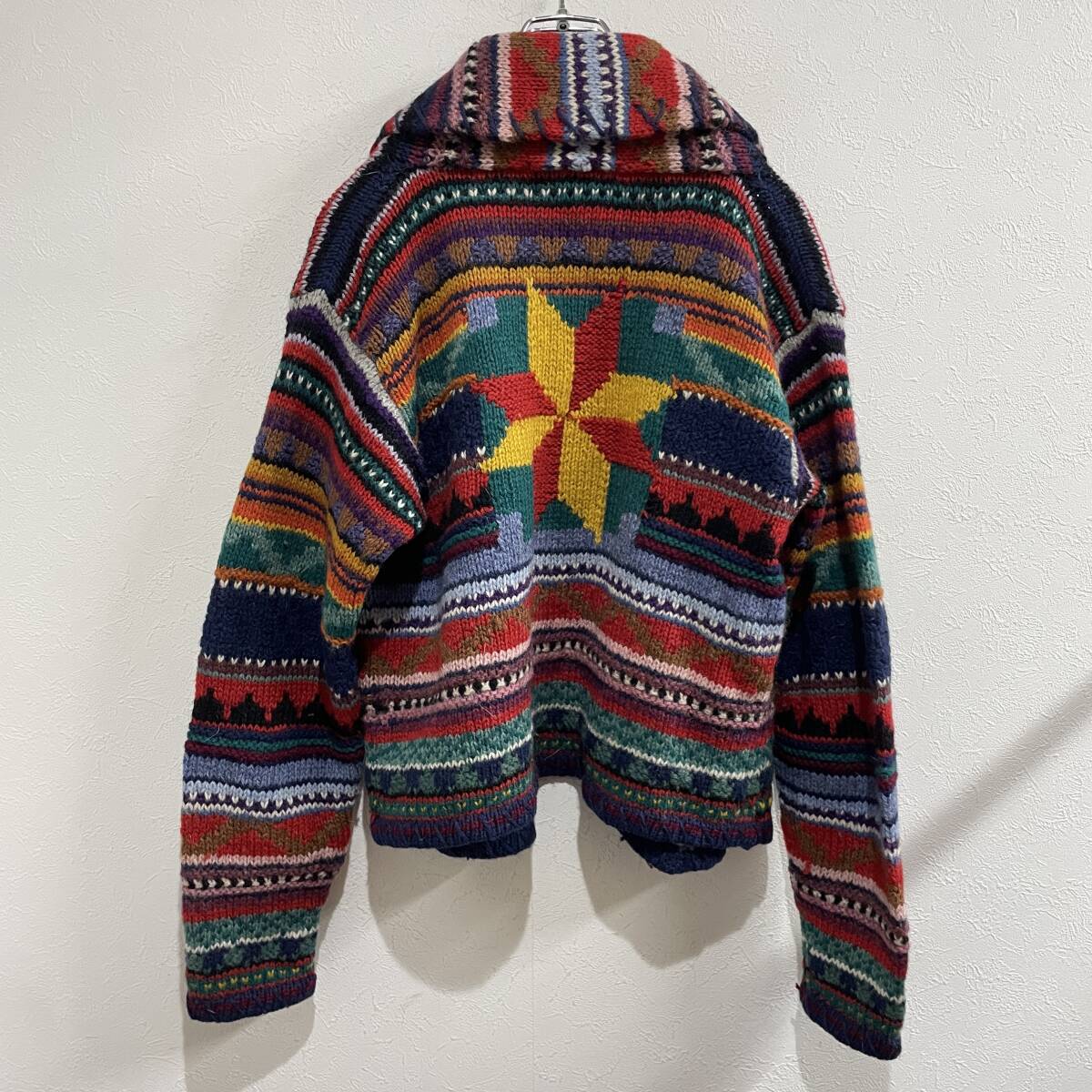 ビンテージ PETITE ネイティブ柄 総柄 ショールカラー コンチョボタン 長袖 ウール ニット セーター カーディガン 240311