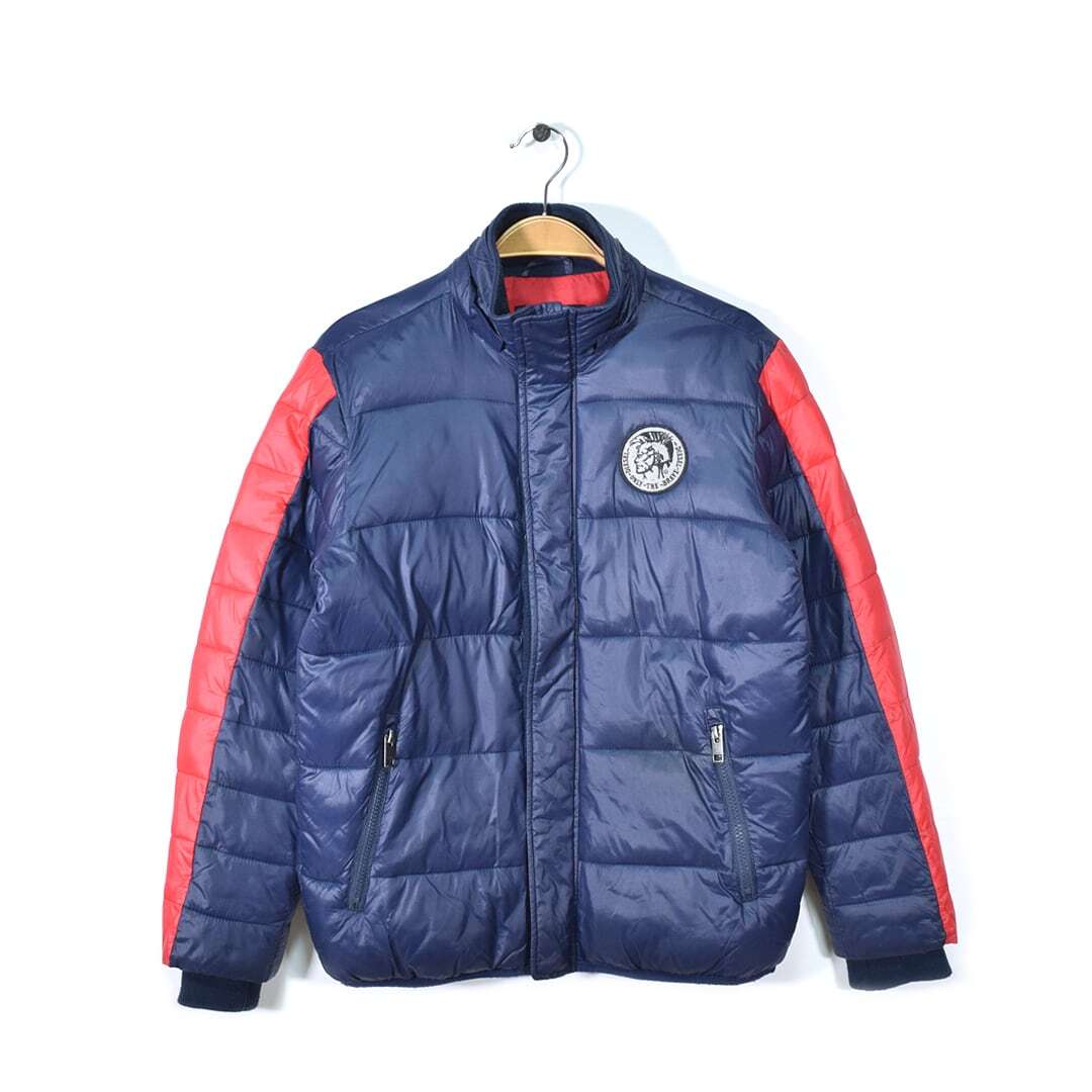【送料無料】ディーゼル ナイロンジャケット 中綿 インディアンヘッド ワッペン 紺赤 DIESEL サイズXS相当 古着 @DZ0528