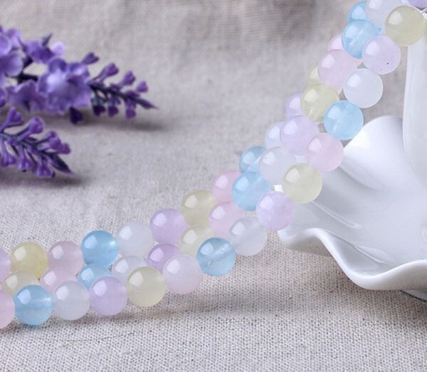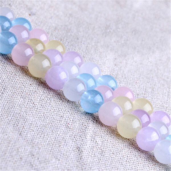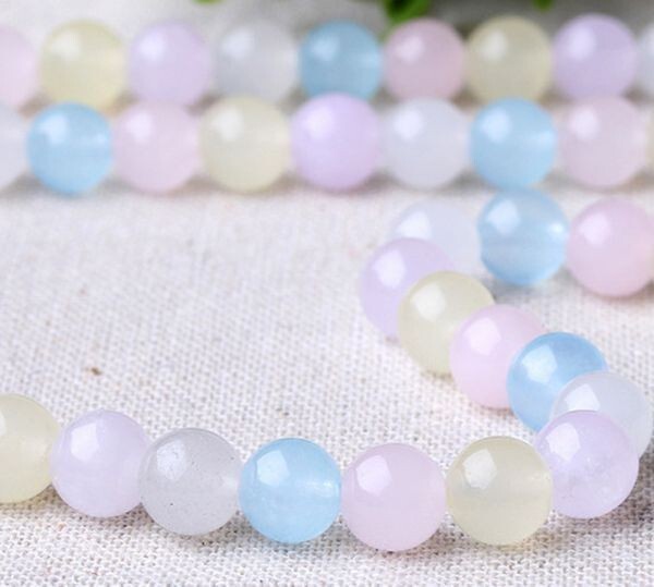 [EasternStar] 海外発送 人造石 モルガン カルセドニー モルガン玉髄 Chalcedony 玉サイズ10mm 手作り 1連売り 長さ約40cm