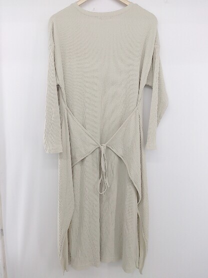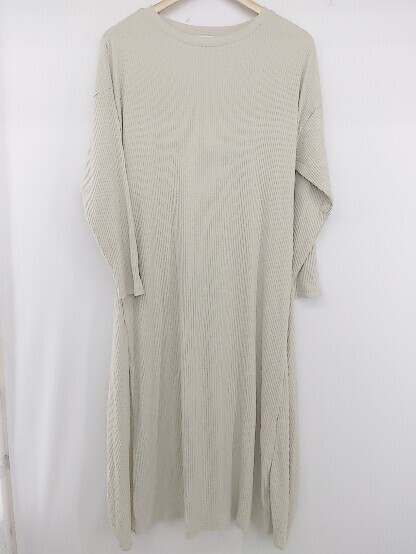 ◇ LOWRYS FARM リブ系 デザイン 長袖 膝下丈 ワンピース サイズF オフホワイト系 レディース P