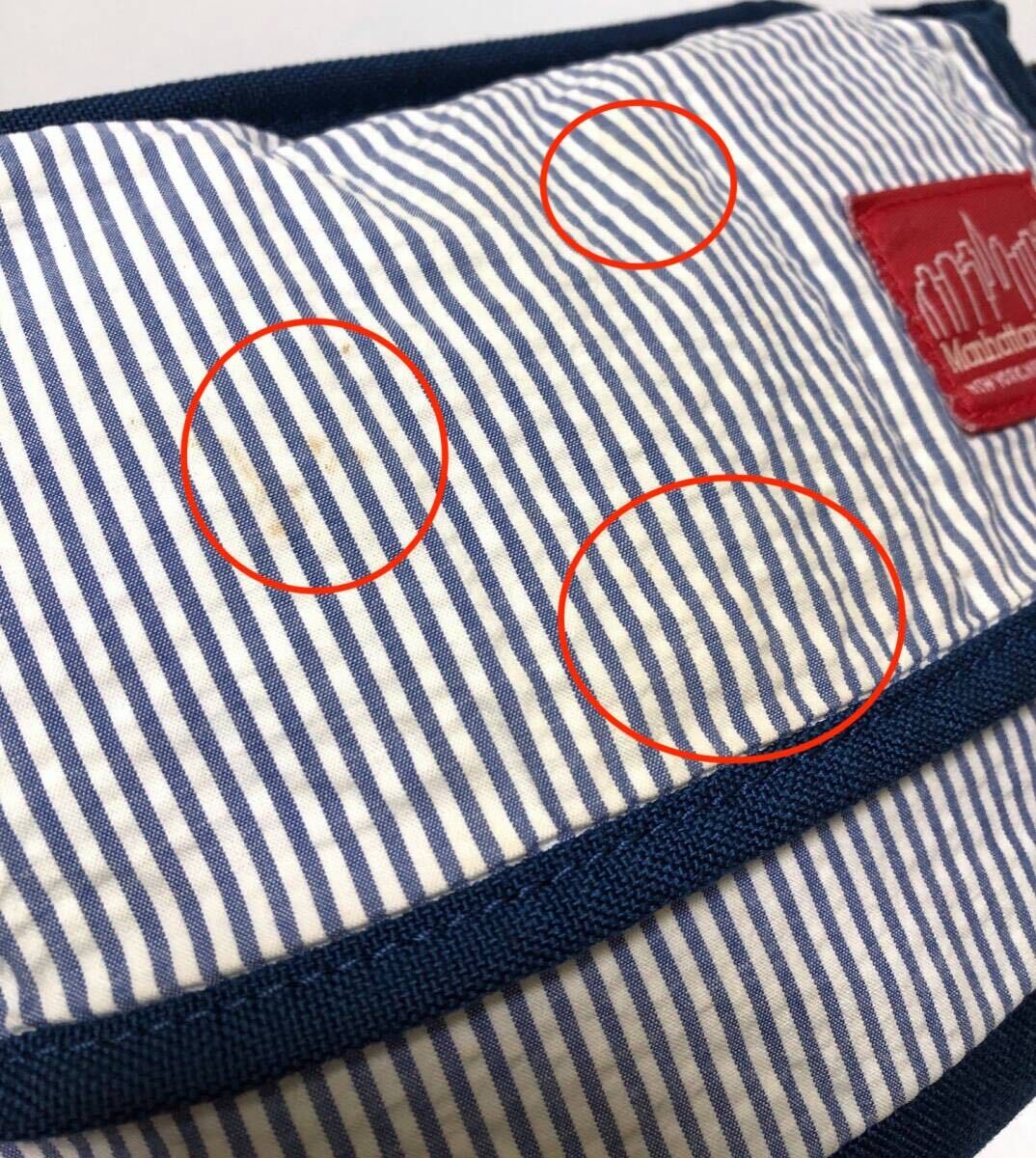 状態:B-C 薄くシミのような跡があります。マジックテープに若干荒れがあります。