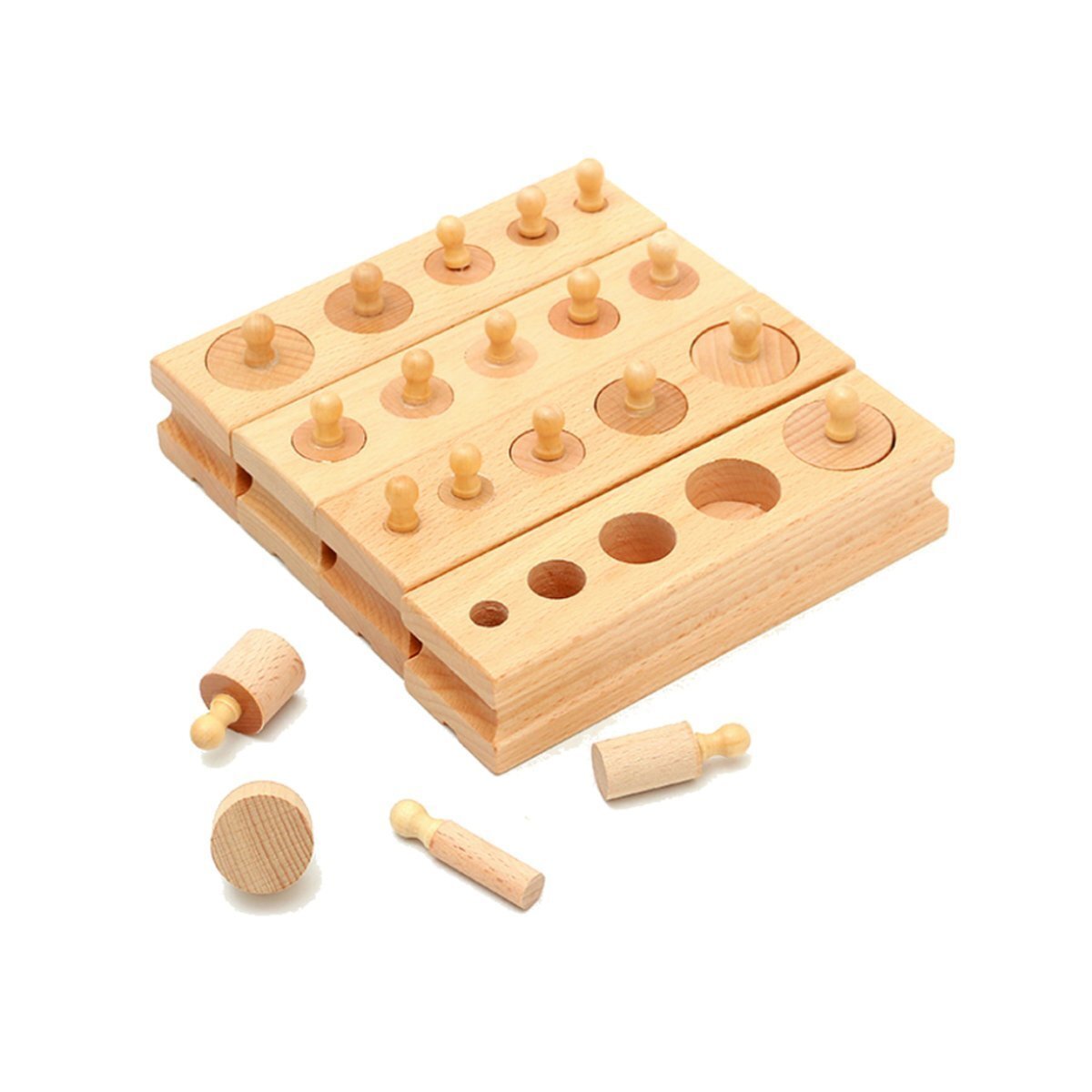 CJM415★モンテッソーリ教育 円柱さし 取っ手 感覚 シリンダー はめこみ 形合わせ ブロック 知育玩具 教材 早期 木製 4本セット