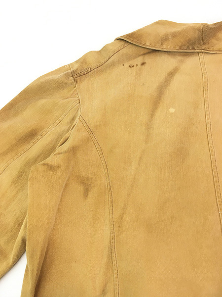 シミ汚れやキズ等見られますが、この辺りの年代のワークジャケットで破れがないものは初めて手にしました。