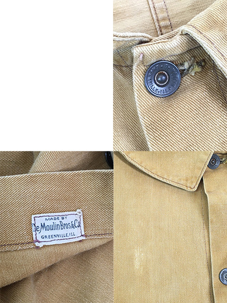 1892年創業 第一次・第二次世界大戦時はアメリカ軍用の制服等の製造も行っていたDe Moulin Bros&Coによる、古いヨーロッパの仕様の名残が強く残るブランド初期頃、おおよそ1900年代の大変貴重なワークジャケット。