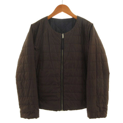 メルローズ MELROSE ジャケット ノーカラー リバーシブル キルティング 中綿入り ネイビー 紺 ブラウン 茶 レディース