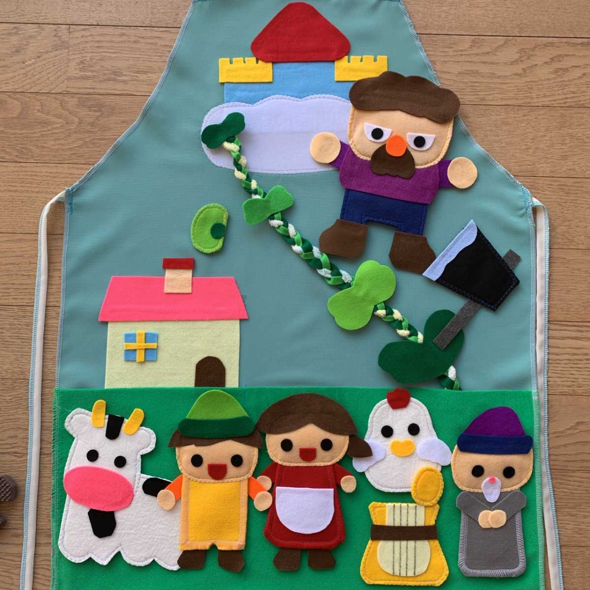 豆、斧にマジックテープは付いていませんので、手に持って演じて下さい。