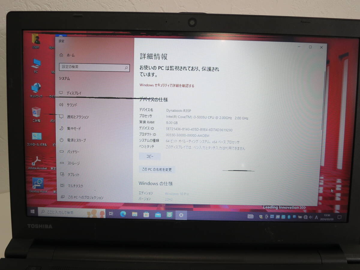 【不具合あり】 東芝 Dynabook Satellite R35/P (03) (Core i3 / メモリ増設 / MS Officeセットアップ済 / WiFi / Windows 10 Pro)