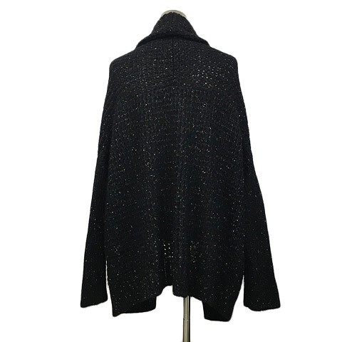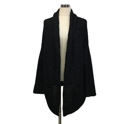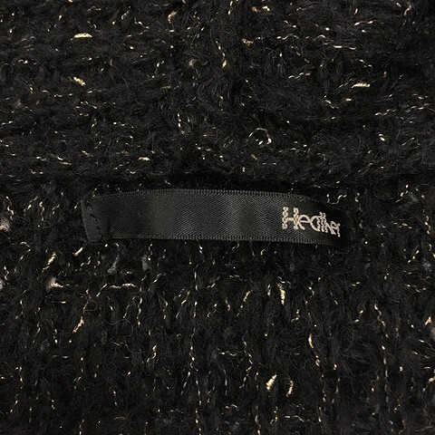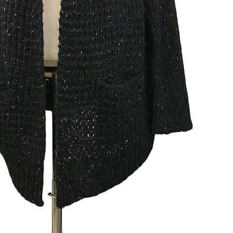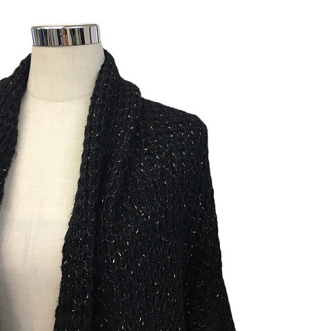 ヘザー Heather カーディガン ニット ショールカラー 前開き モヘヤ混 ラメ 長袖 F 黒 金 ブラック ゴールド レディース