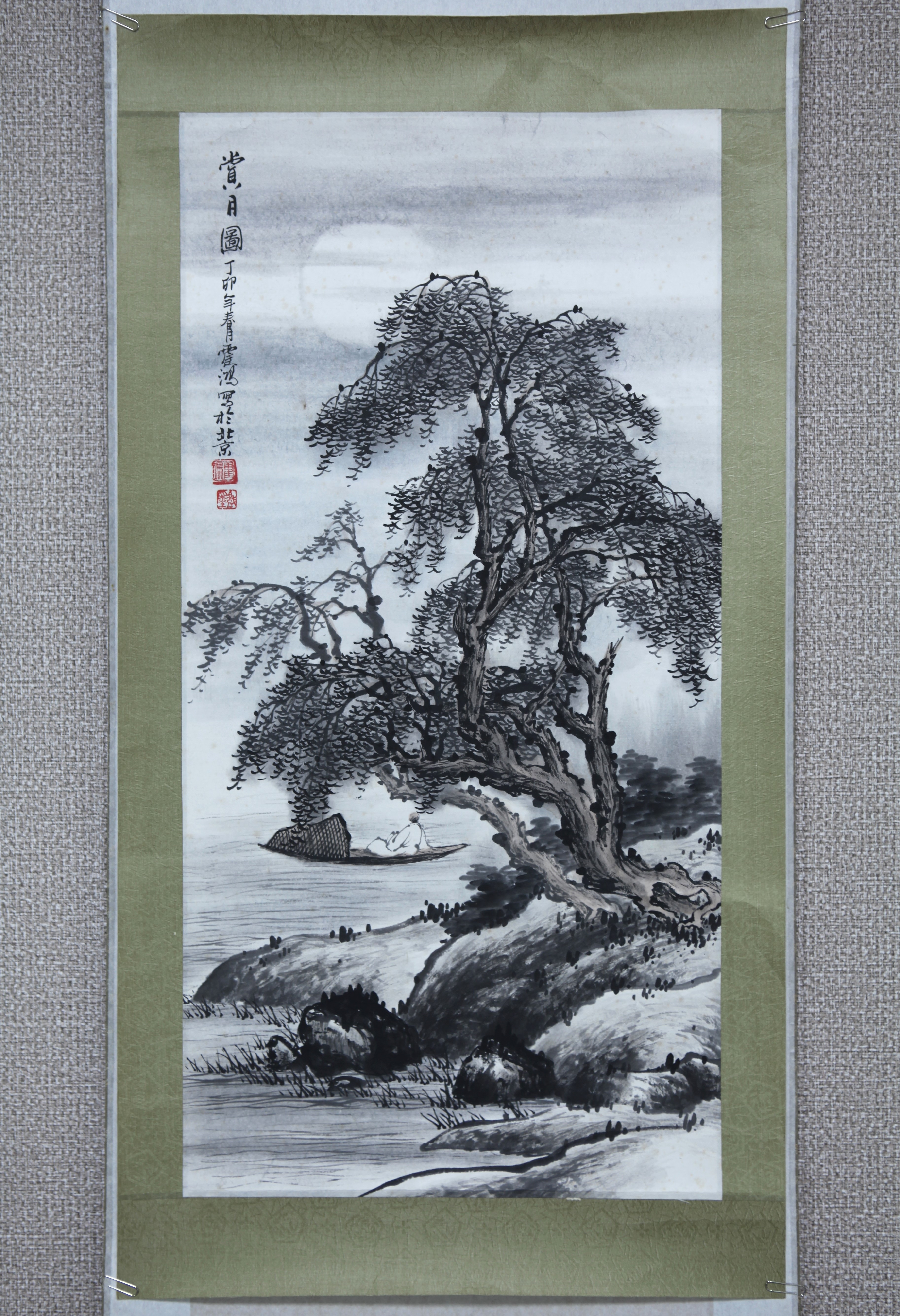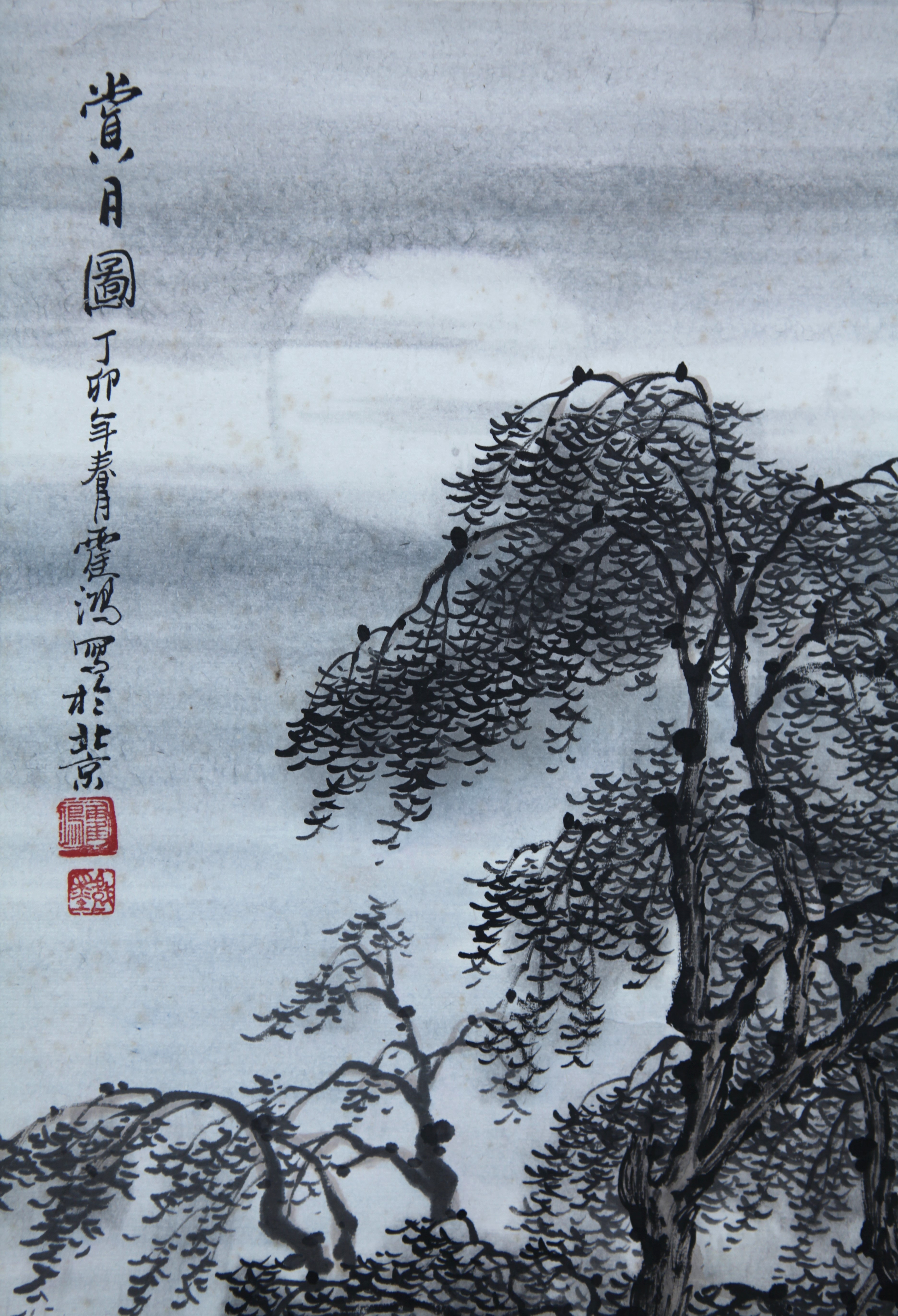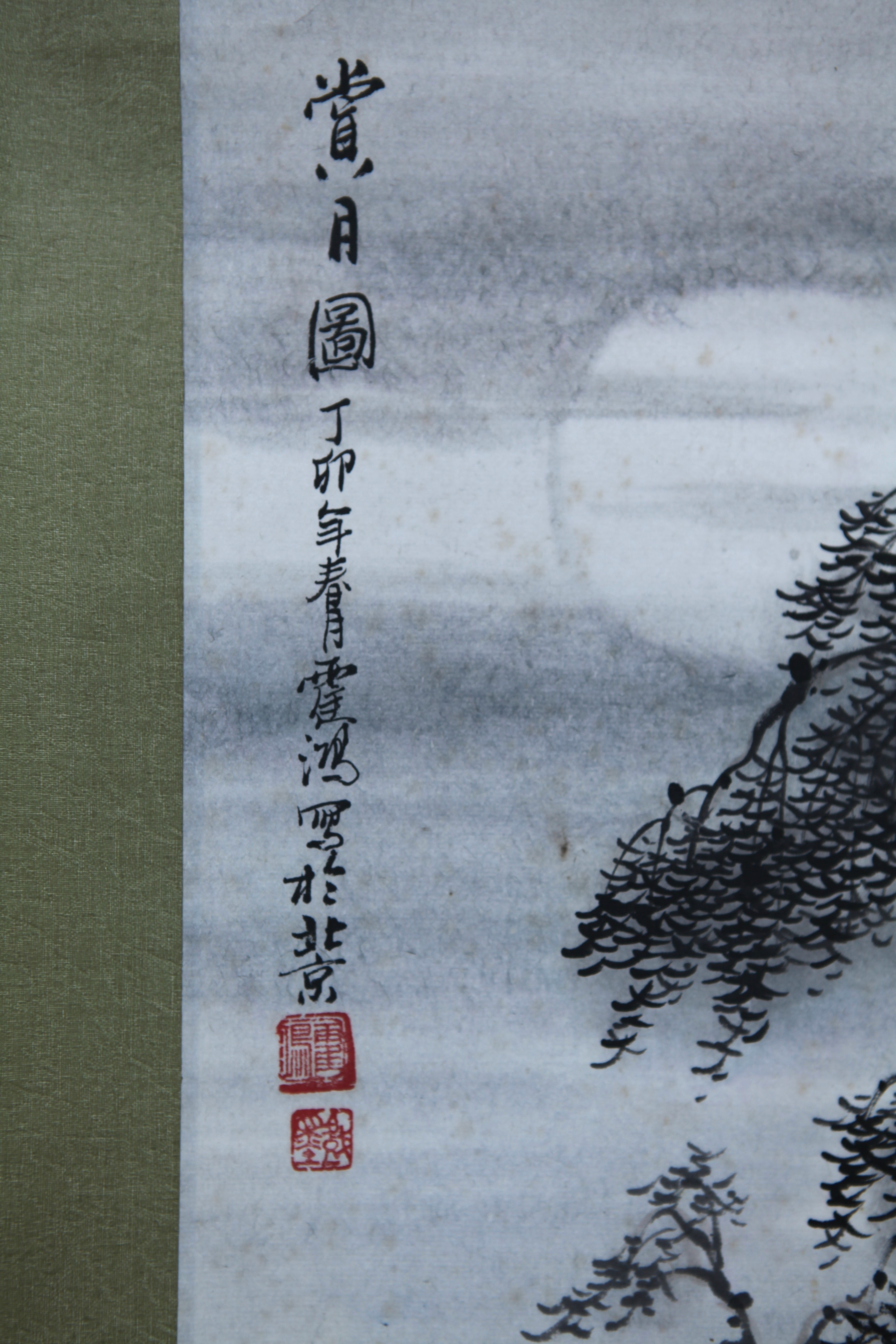 | 【真作】【風車】 霍鴻 「賞月図」◎肉筆紙本◎北京の人 周之林師事 燕京書社画家 中国美術 中国画 | ||||||||||||||||||||