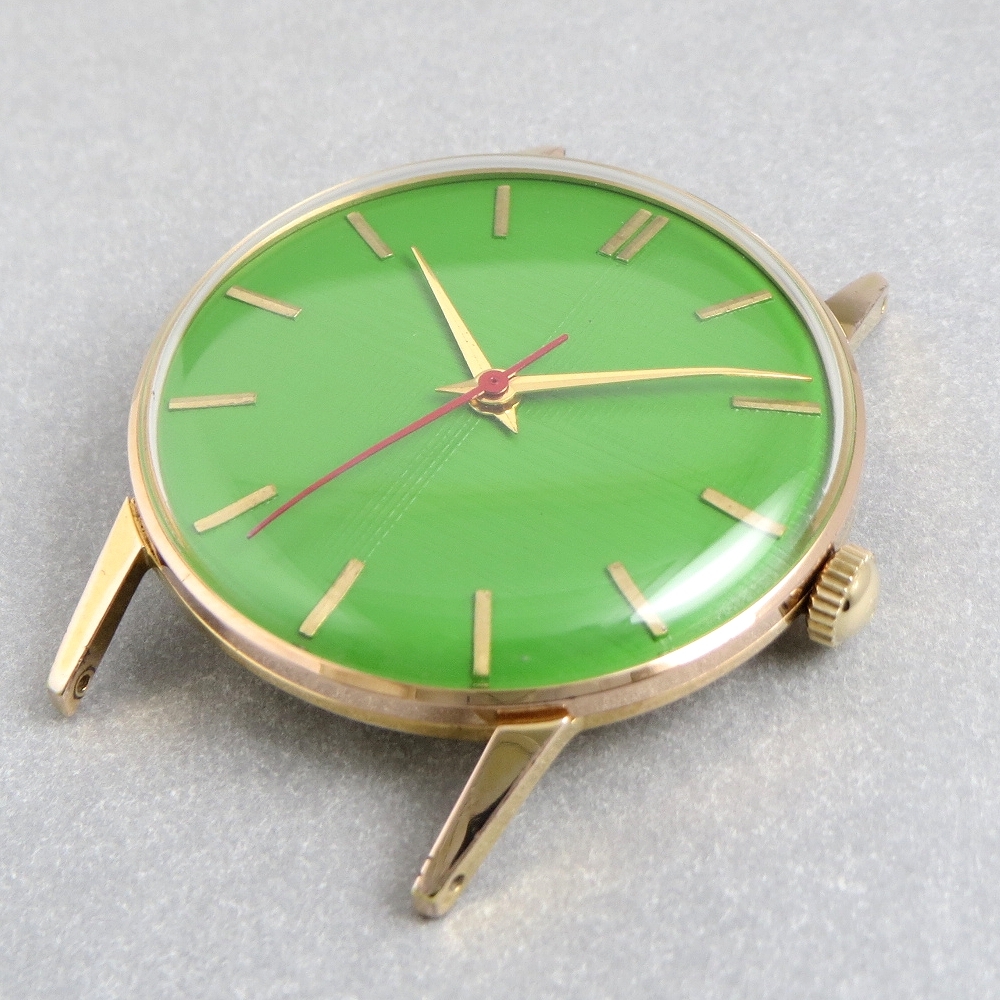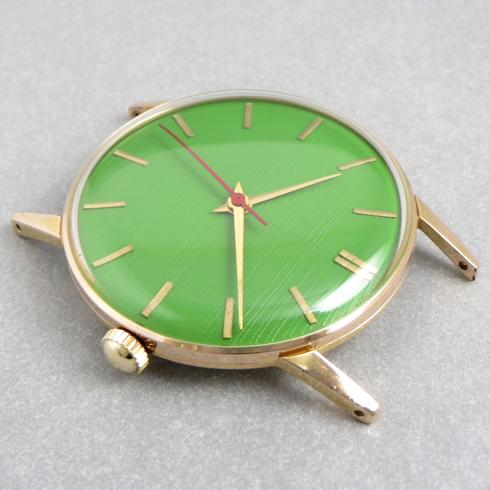 ・文字盤は、純正品を加工しています。表面には、ギョーシエの模様がございます。色は、少し濃い目のグリーンです。*ご使用の、モニターの性能や種類、明るさ等の設定によって、色合いが現品と違って見えたり致します。