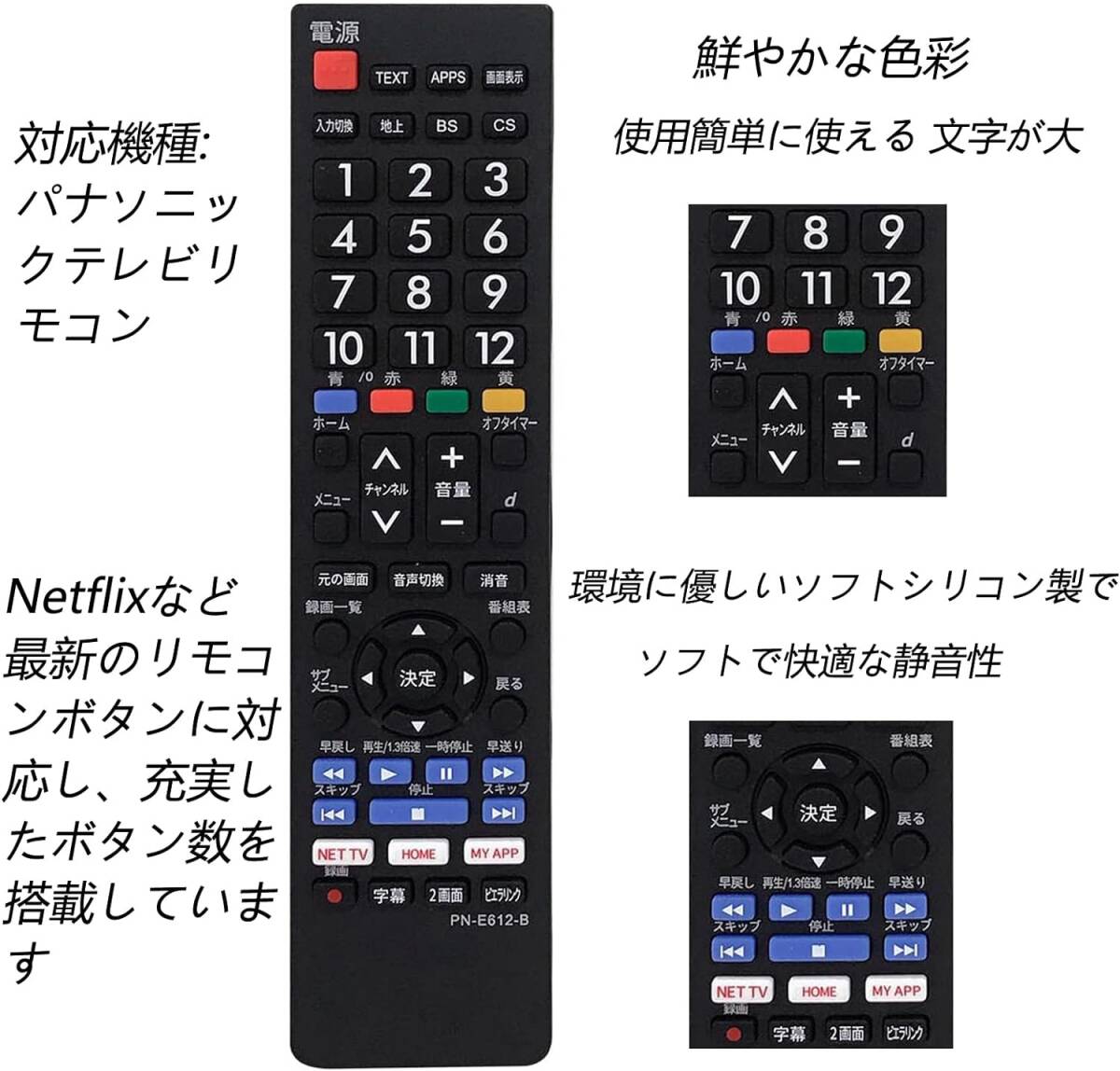 テレビリモコン 対応 Panasonicリモコン テレビ 対応パナソニックテレビリモコン 液晶テレビ用 文字が大 る 使用簡単に使え 応答性が高く TV リモコン 設定不要すぐに使えるリモコン テレビリモコン パナソニック【液晶テレビ専用モデル】パナソニックテレビリモコン対応リモコン パナソニック液晶テレビ、強力な信号、簡単な操作、パナソニック製テレビ ビエラにえるかんたんTV用、直接対応、設定不要、簡単に使用できる。Netfixなど最新の2022年版リモコンに対応し、純正品と同じボタン配置と設定機能を搭載。
