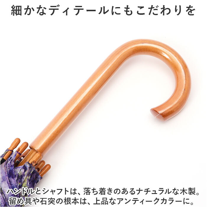 | 商品説明 | ・・名画の世界観に浸って、晴れやかな気持ちでお出かけ♪名画シリーズの「木製ジャンプ傘」が新登場。 ・【華やかな名画プリントデザイン】 ・世界的に有名な名画を、傘生地の全面にプリント。お気に入りの作品がきっと見つかる、豊富なバリエーション。 ・【細かなディテールにもこだわりを】 ・ハンドルとシャフトは、落ち着きのあるナチュラルな木製。留め具や石突の根本は、上品なアンティークカラーに。 ・【簡単ワンタッチオープン】 ・黒&ゴールドの開閉ボタンを押して、片手でサッと開きやすいジャンプ式。片手に荷物がある時や、突然の雨でも大丈夫! ・【軽くて丈夫な心強い味方☆】 ・しなやかなグラスファイバーと、スチールを使った骨組。持ち運びやすい軽量設計ながら、丈夫なつくり。 ・【しっかり留まるボタン式バンド】 ・傘生地を留めるバンドは、バチンっと留めやすいスナップボタン式。 ・【憂鬱な気分も吹き飛ばしてお出かけ】 ・色鮮やかな名画が、雨の日の落ち込む気持ちもパッと明るくしてくれる♪コーデのアクセントにもなるデザイン。 |