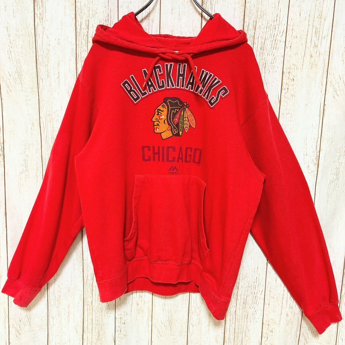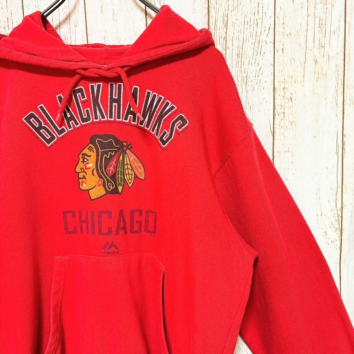 【商品説明】マジェスティックのNHLシカゴ・ブラックホークスのプリントスウェットパーカです。