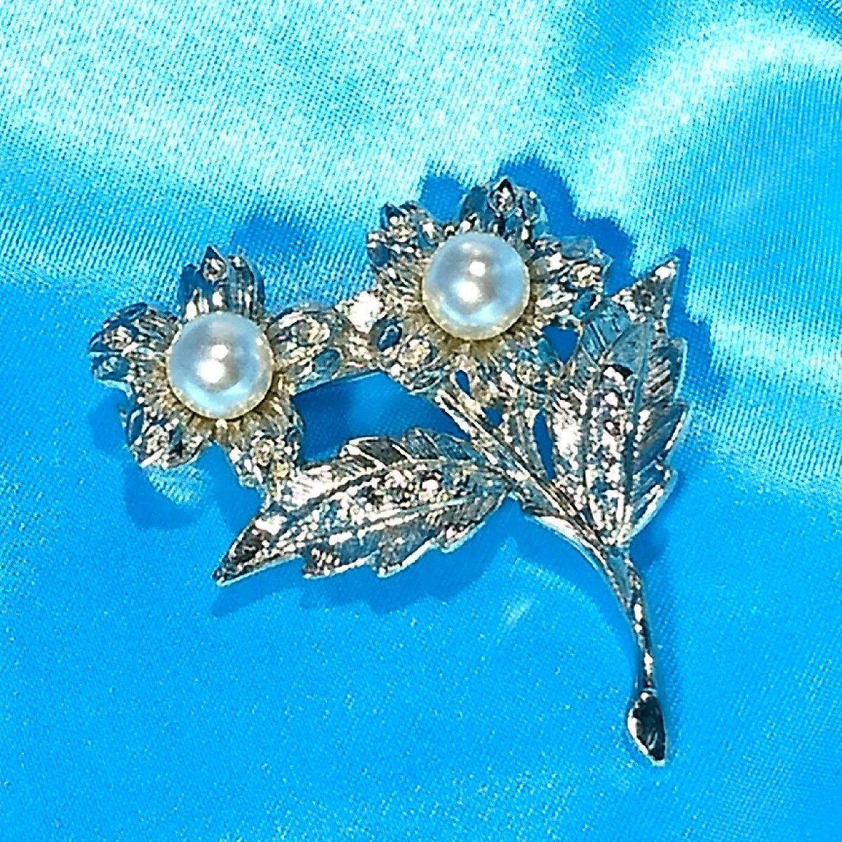 送料無料)ビンテージ☆パール お花モチーフ☆アンティーク ブローチ A23396