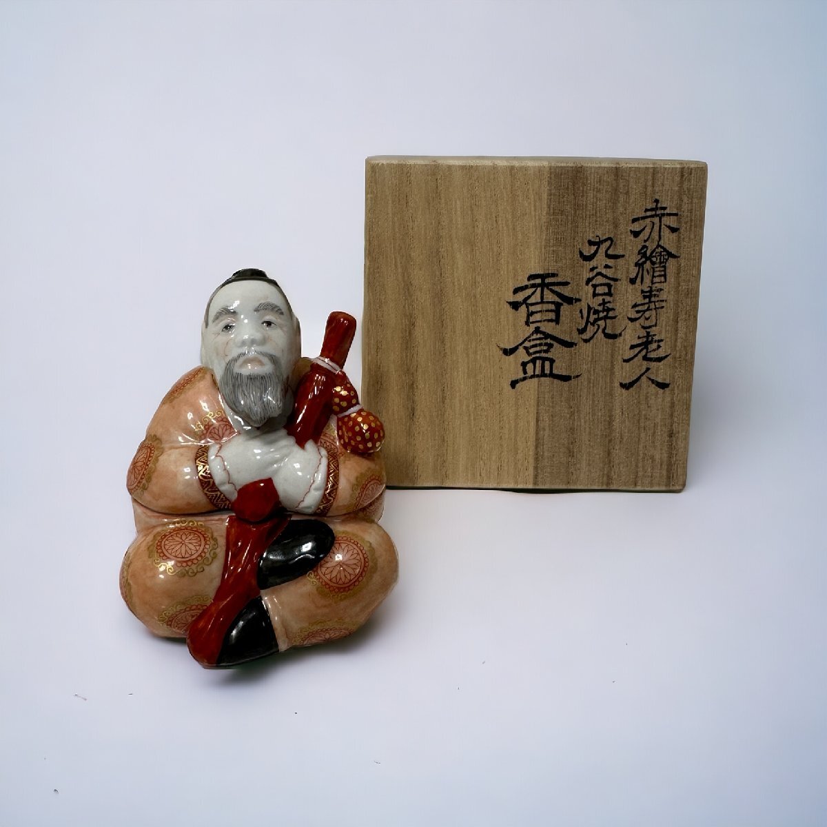 B86 福島武山 赤繪寿老人 九谷焼 香炉 共箱 真作 | |||