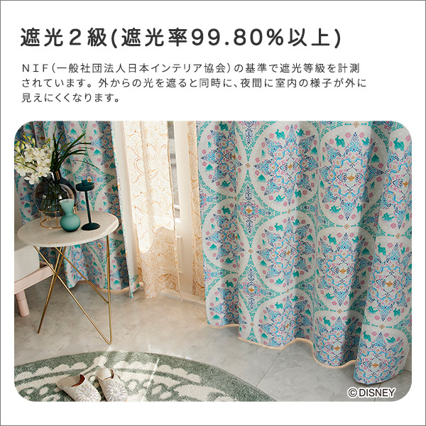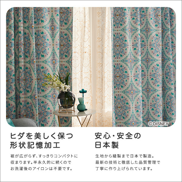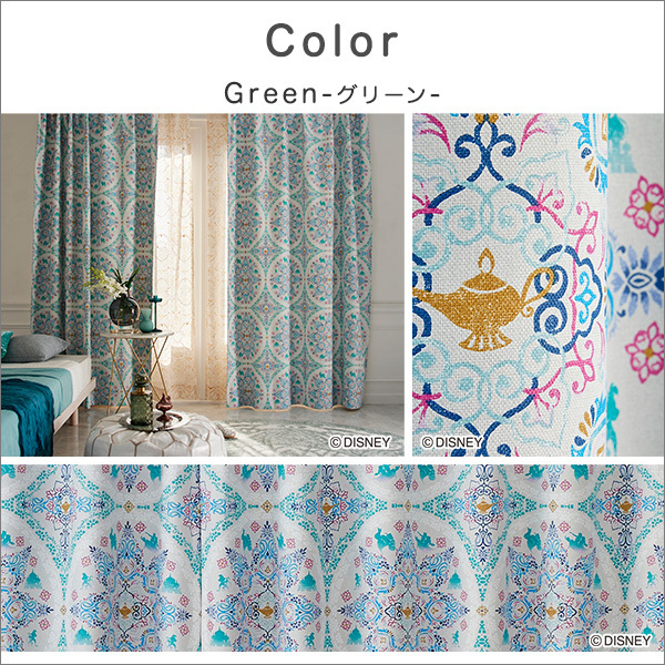 DISNEY/ディズニー ドレープカーテン 100×135cm×1枚 PRINCESS/Magic lamp プリンセス/マジックランプ グリーン