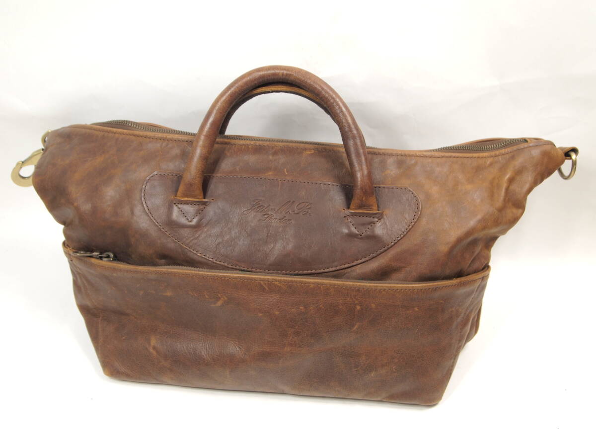 外観はオールレザーで使い込むことによって味が出てきます。非常に丈夫な作りです。 ちょっとした小旅行にもご利用いただけます