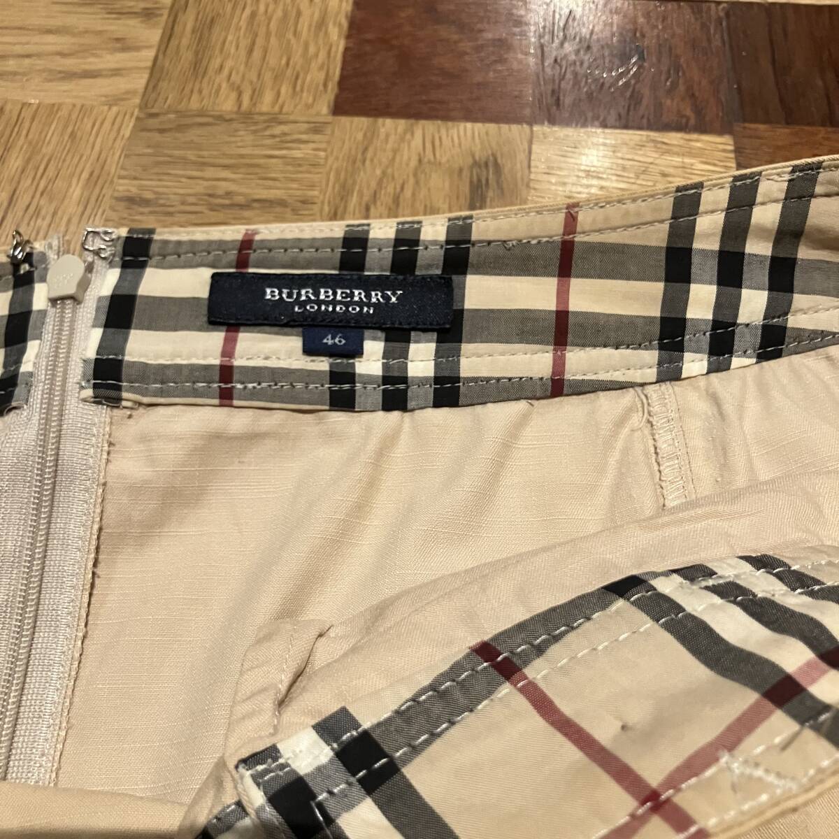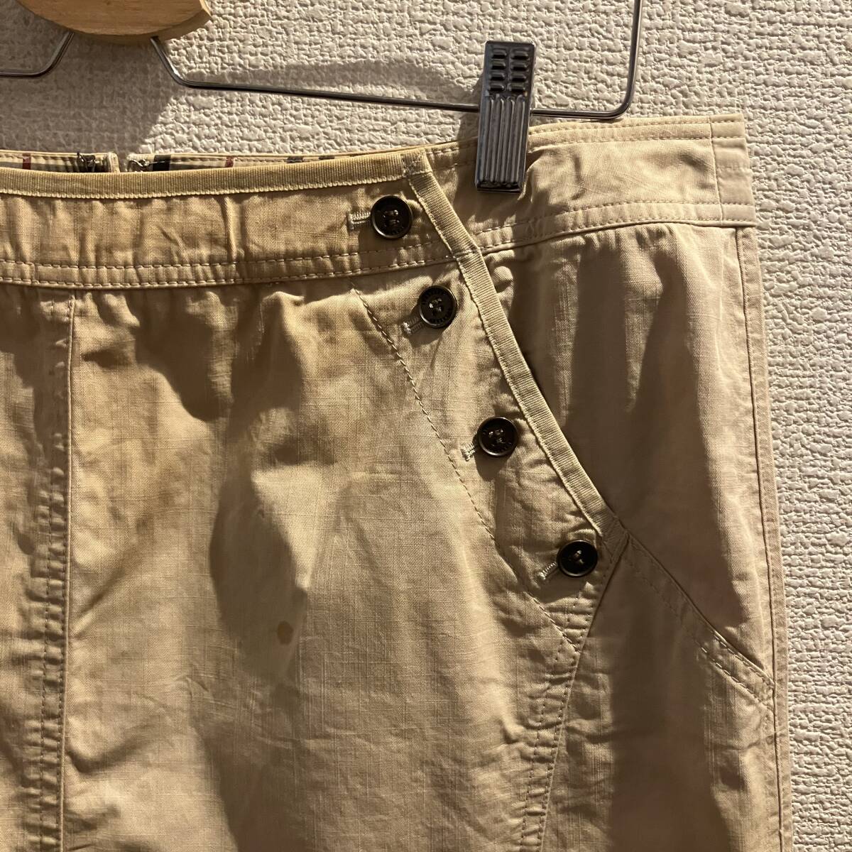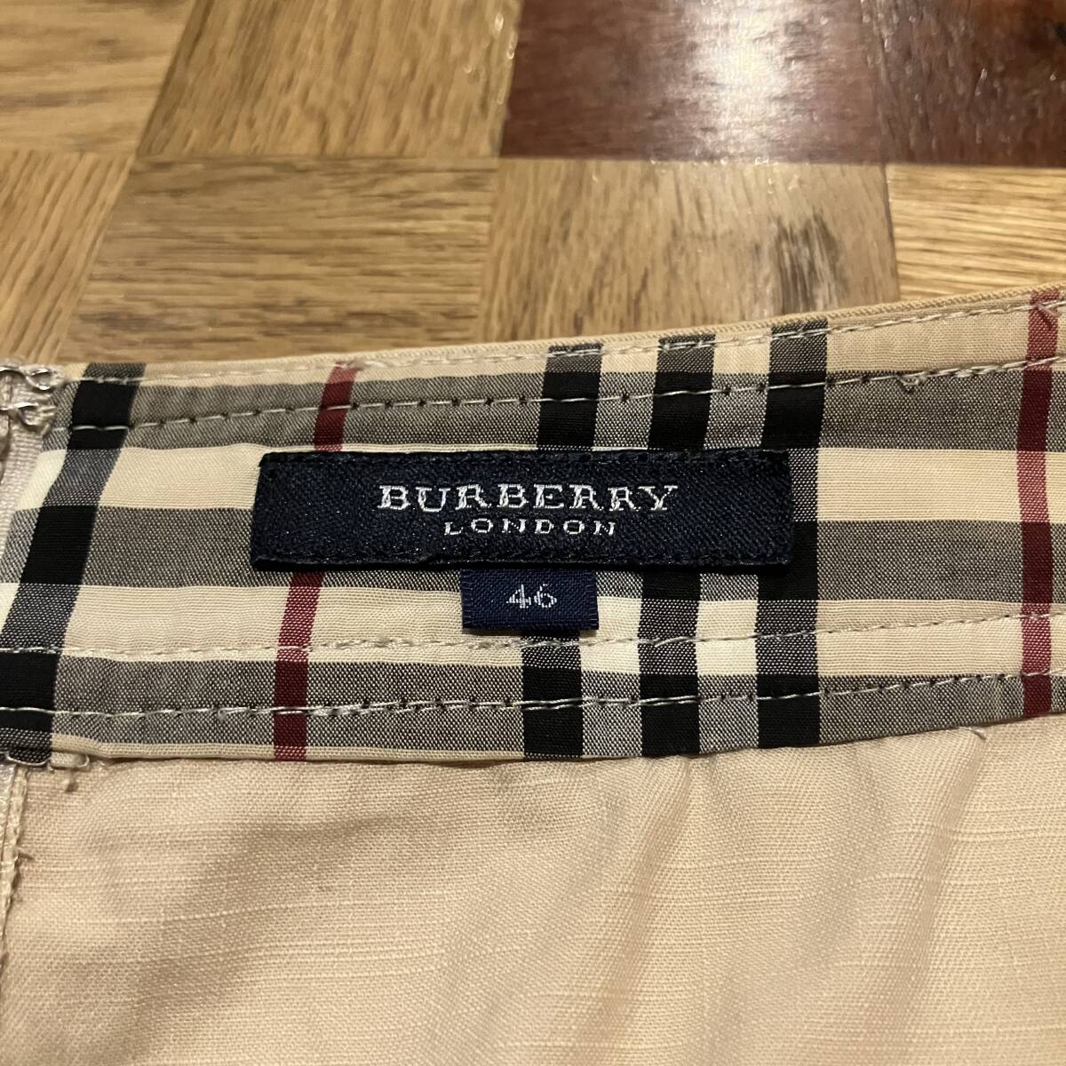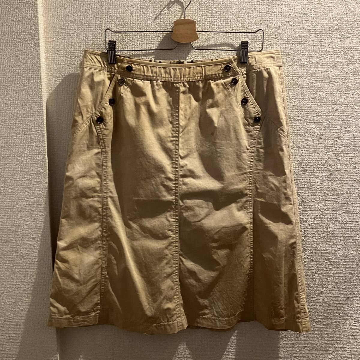 バーバリーロンドン リネン混チェック柄使いロゴ釦スカート