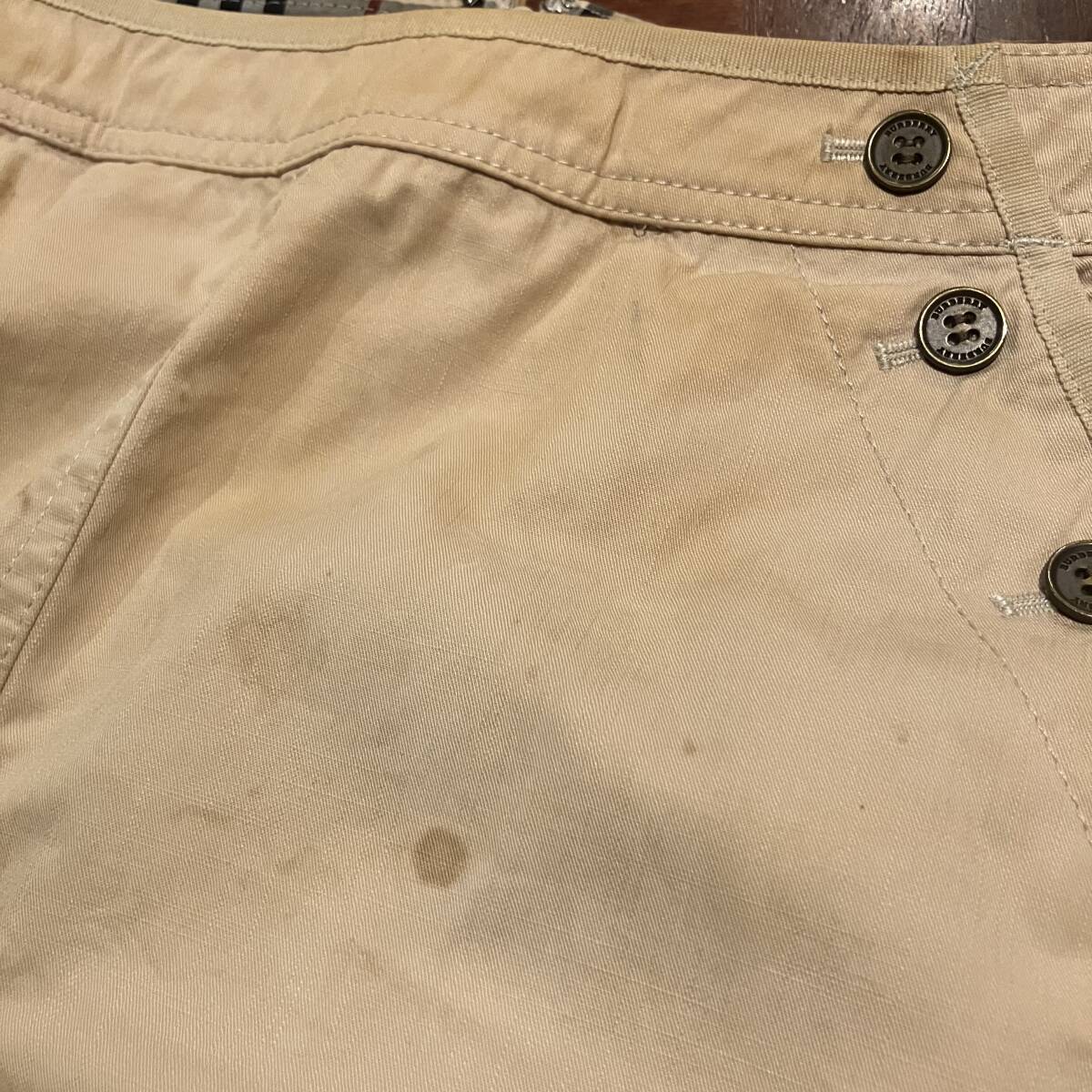 全体的に汚れ、ウエスト金具にホツレ、タバコのにおいがございます。