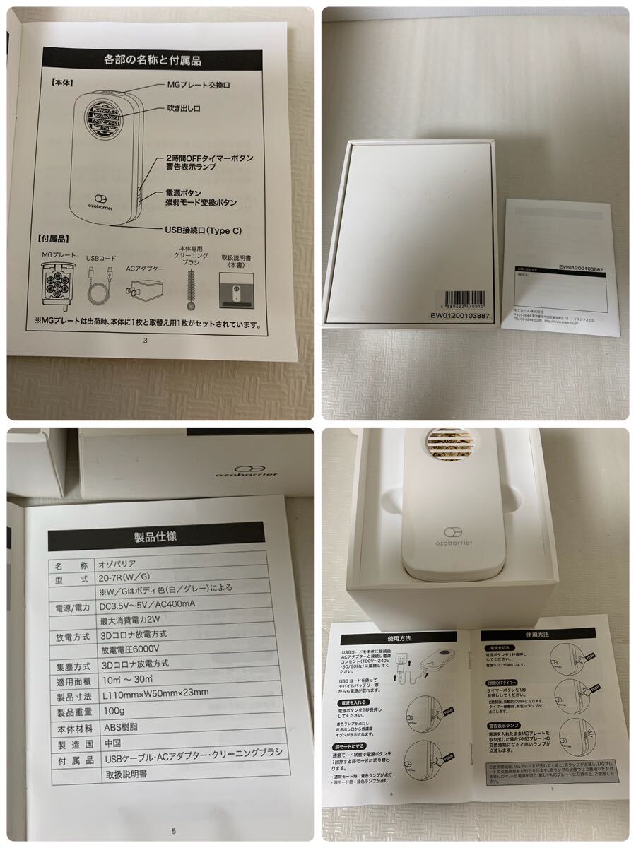 エクレール オゾバリアozobarrier 低濃度オゾン発生器/花粉ウイルス対策等/軽く通電ライト点灯のみ確認/部品取り用/箱紙類変色小傷汚れ等