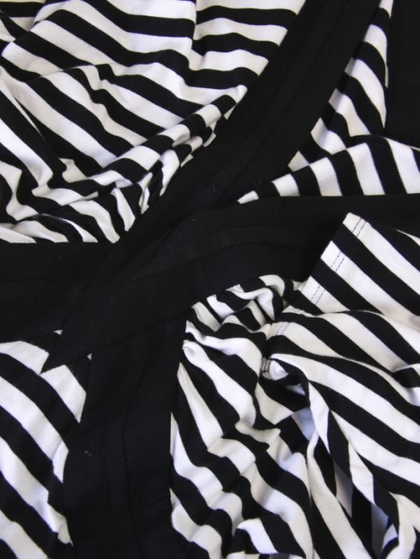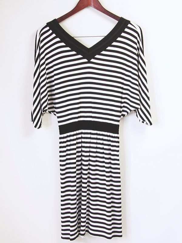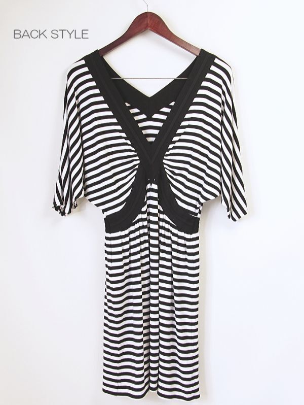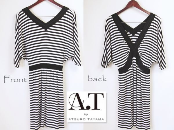 B549☆ アツロウタヤマ A.T ATSURO TAYAMA とろみ素材 カットソー ワンピース 背中みせ ボーダー チュニック レディース モノトーン
