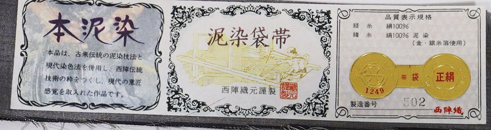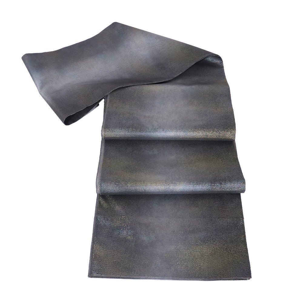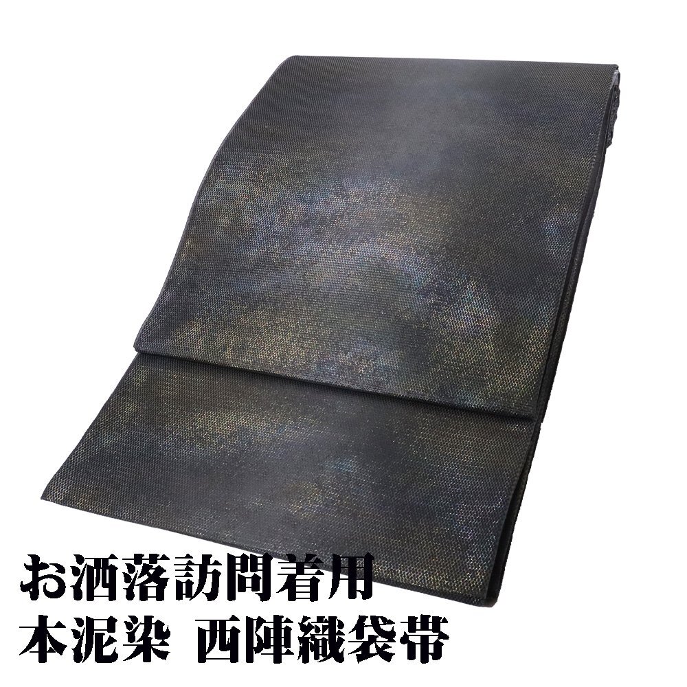| 西陣織袋帯 本泥染 金箔・緑・紫・グレー暈し 全通 証紙付き 未使用品 仕立て上がり | |