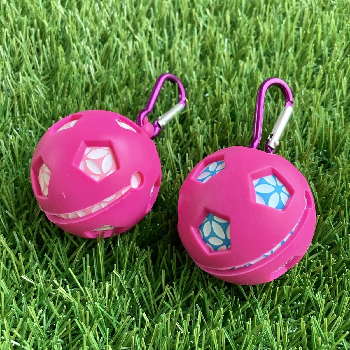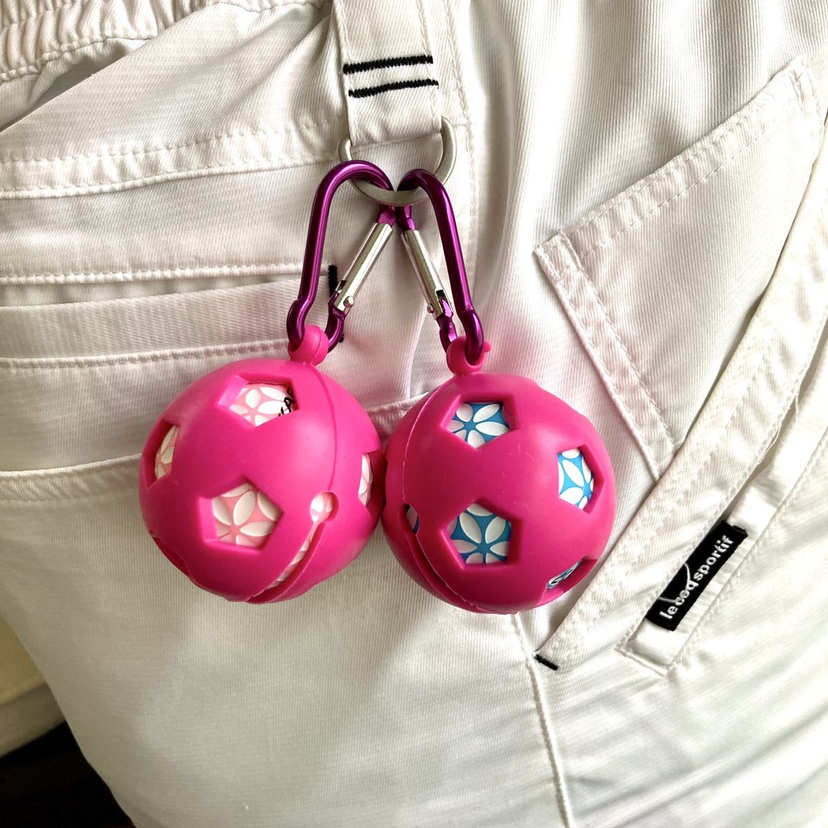 1つのホルダーにゴルフボールがキレイに収まります(*´∀`)♪ ソフトシリコン製の為、カンタンに出し入れができますし、手触りや耐久性も良くボールが落ちることもありません。カラビナフックが付いていますので、ベルトループにつければ予備ボールの持ち運びは簡単ヽ(^o^) キャディーバッグに取り付けても良いかと思います♪