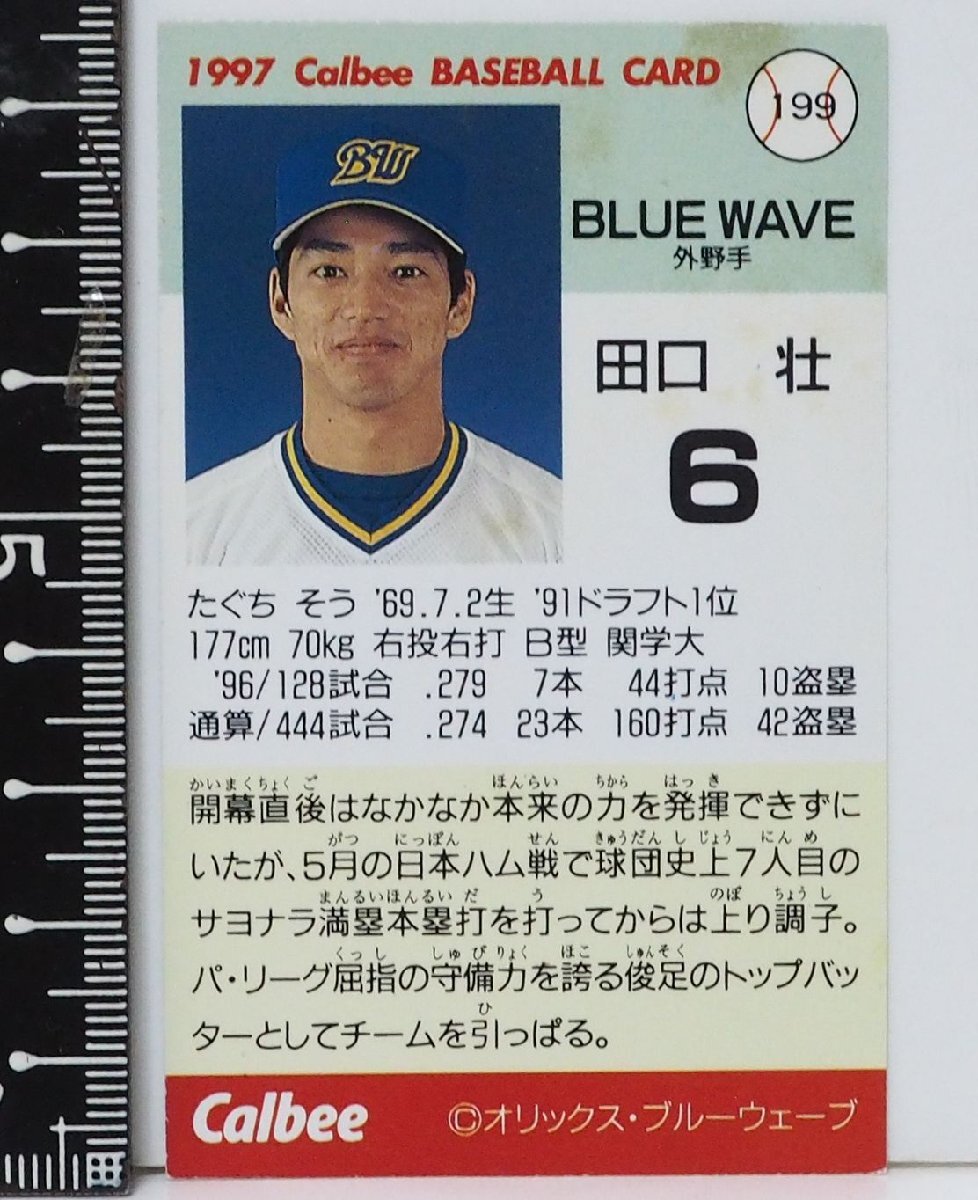 97年 カルビー プロ野球カード 199【田口 壮 外野手 オリックス ブルーウェーブ】平成9年 1997年 当時物 Calbeeおまけ食玩BASEBALL【中古】