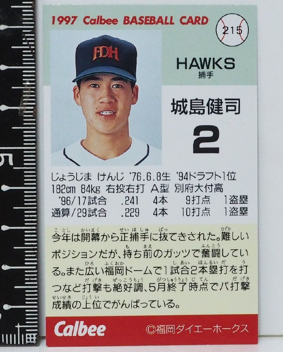 97年 カルビー プロ野球カード 215【城嶋 健司 捕手 福岡ダイエー ホークス】平成9年 1997年 当時物 Calbeeおまけ食玩BASEBALL【中古】
