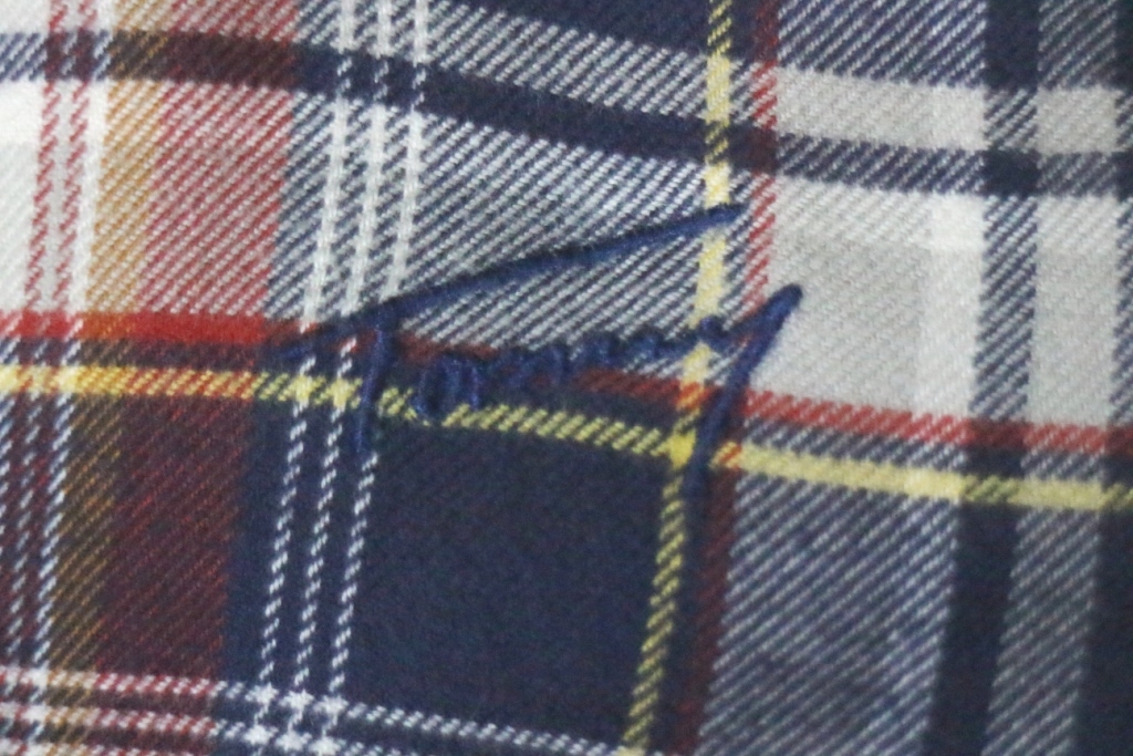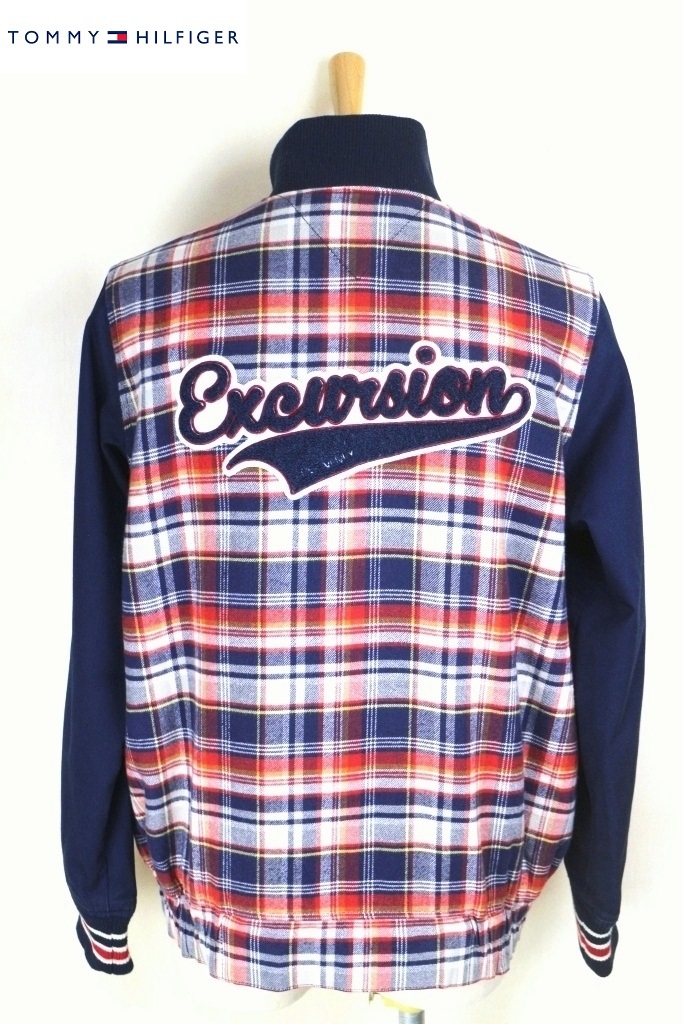 ■美品■TOMMY HILFIGER■春秋 ネルシャツ生地 切り返しバイカラー ブルゾン M ネイビー チェック トミーヒルフィガー ジャンパー 紺