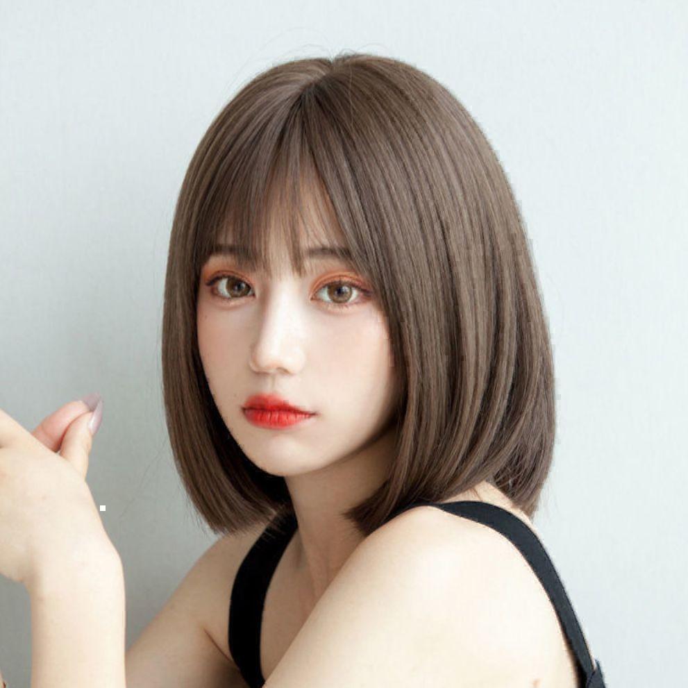 フルウィッグ ウィッグ ボブ ミディアム ショート ストレート ダークブラウン ブラウン 耐熱 自然 ネット 高品質 医療用 簡単 サラサラ 人工頭皮 コスプレ ネット付 ぱっつん 小顔 438
